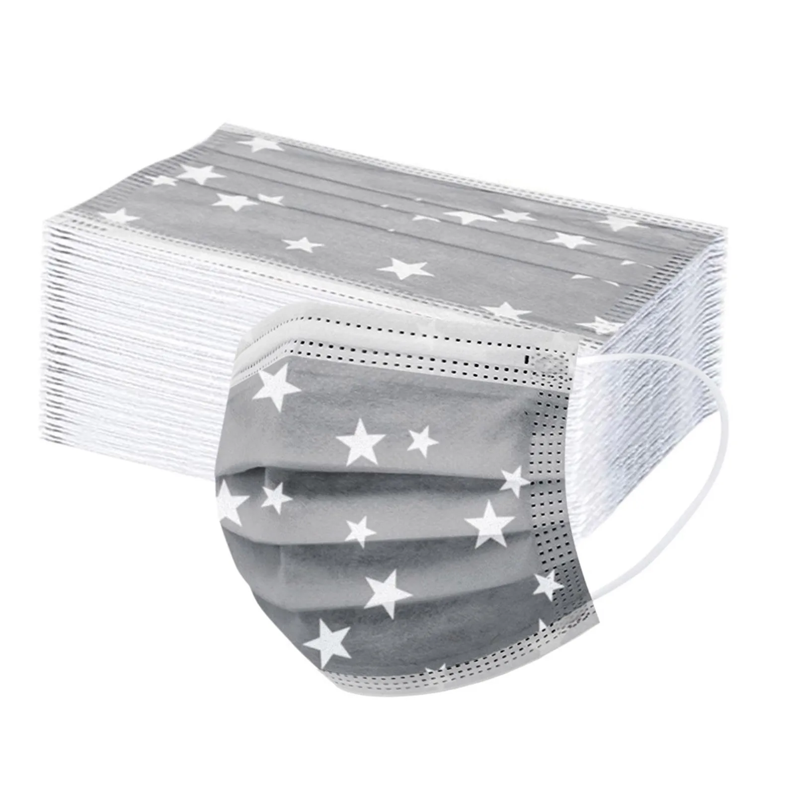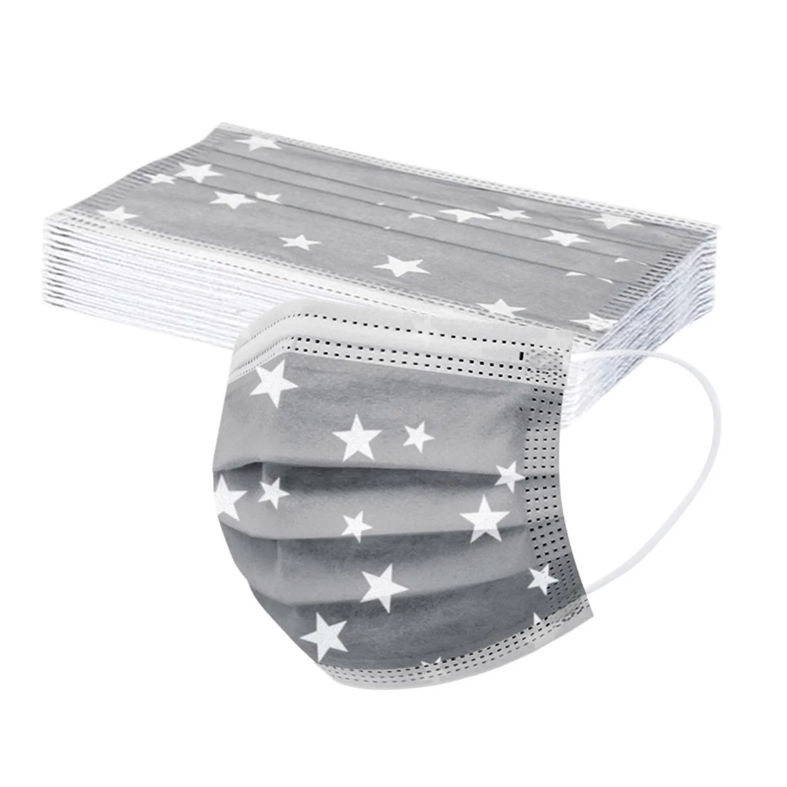 102050100 шт для взрослых маска для лица пятиконечная звезда печати Маски Рот 3ply нетканый материал туши для ресниц петли уха Mascarilla