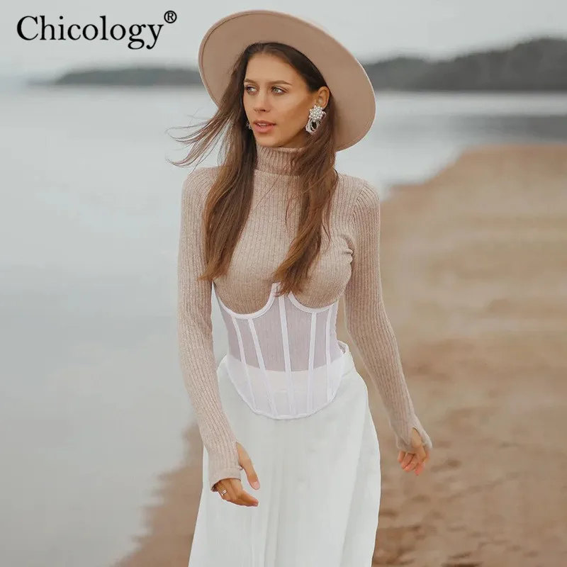 Chicology сетчатый корсет на шнуровке, укороченный Топ для женщин, модная сексуальная рубашка, 2020, зимняя осенняя одежда, праздничные вечерние, Клубные, уличная одежда