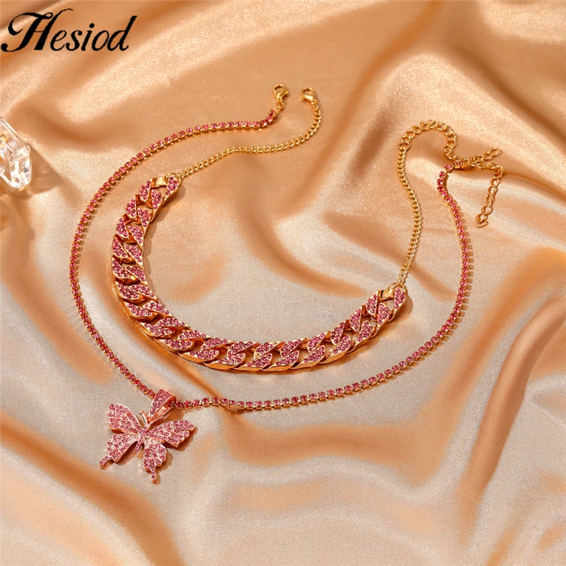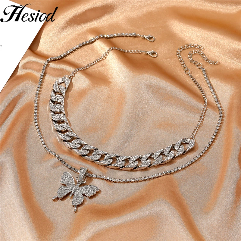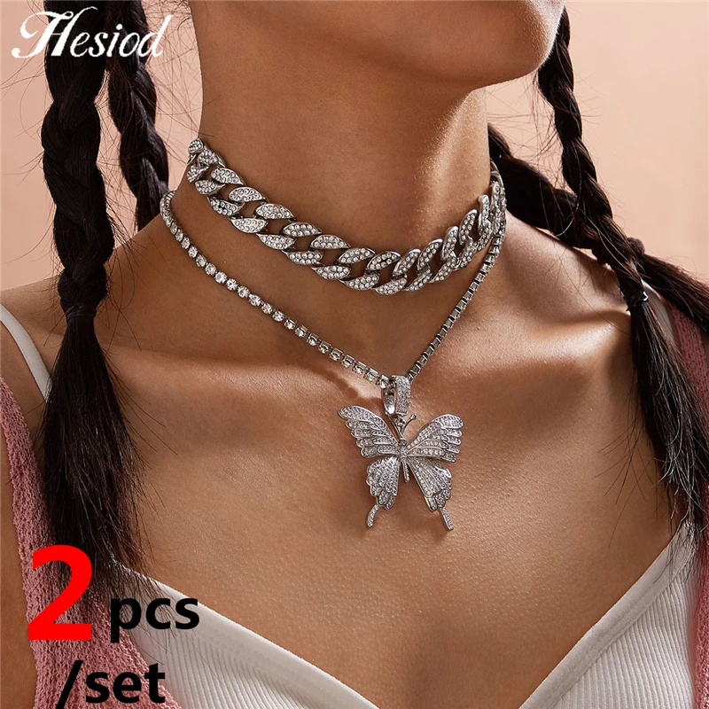 2 шт./компл. ожерелье с кубинской цепочкой и бабочкой