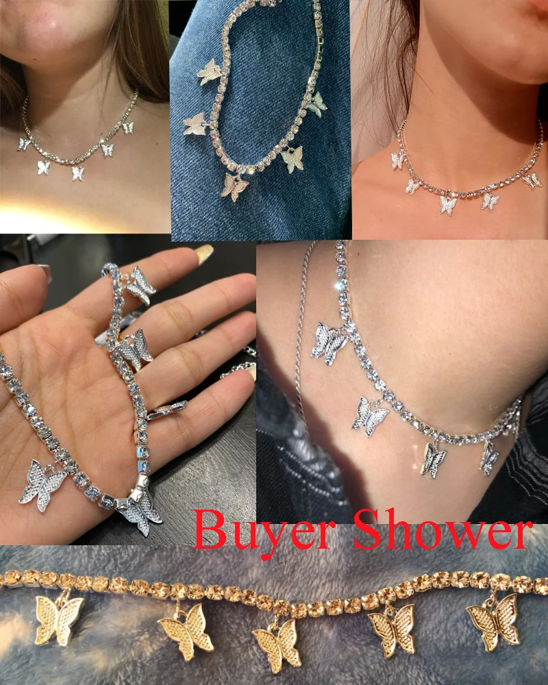 Iced Out Crystal Butterfly NecklaceCZ Tennis Chain Choker Necklaces