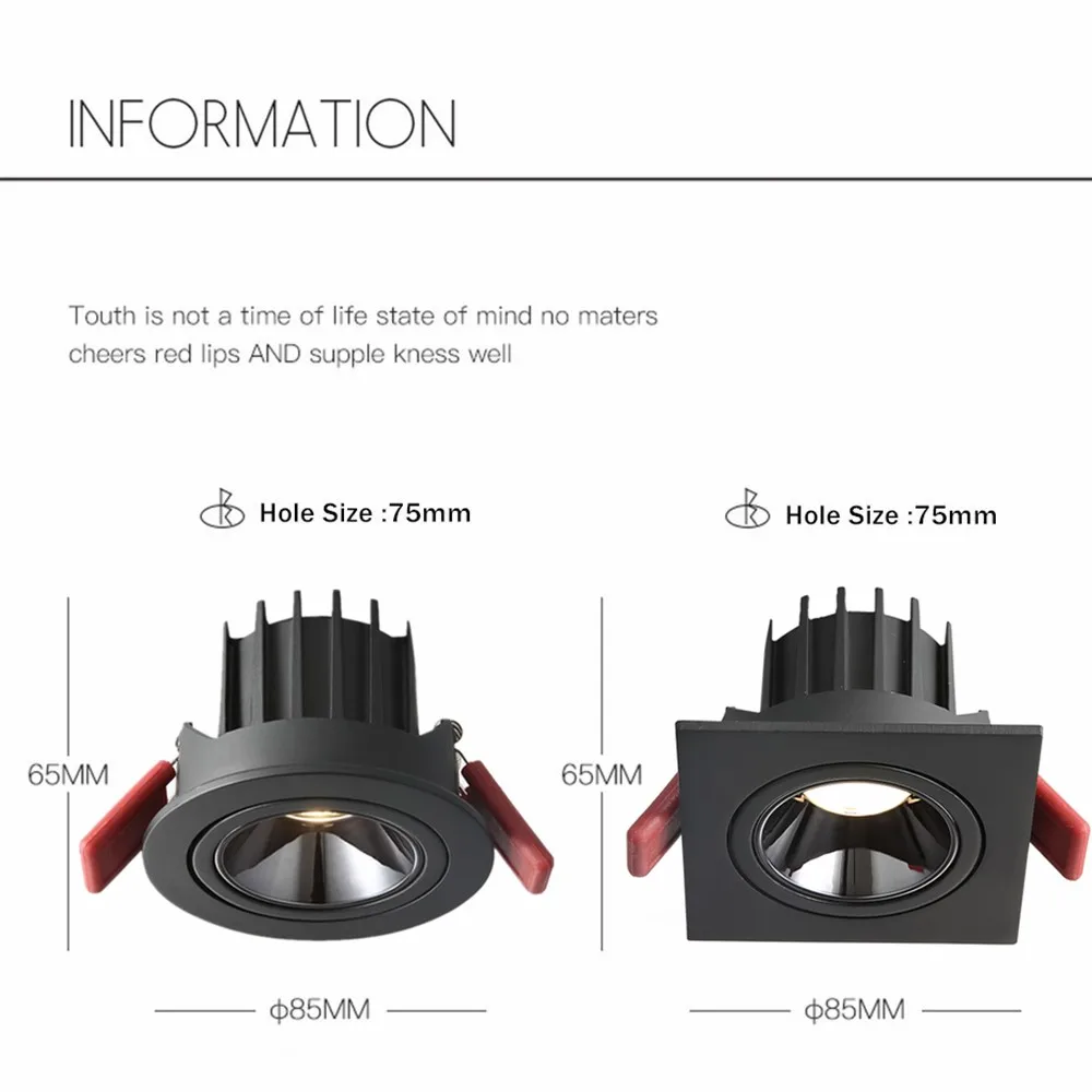 Анти-блики потолочный светодиодный светильник 7 Вт 12 Вт квадратныйкруглый потолочные встраиваемые светодиодные лампы 220V 110V светодиодные точечные светильники для фон точечный светильник