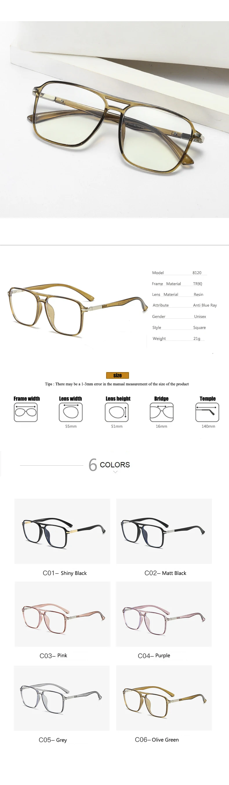 Очки мужские и женские офисные большого размера, с защитой от синего света, 2020