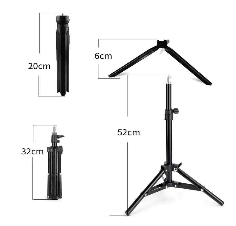 1 светодиодный заполняющий кольцевой светильник (16 см/20 см/26 см) 1 Мини шаровая Головка 1 usb-разъем 1 мини-штатив