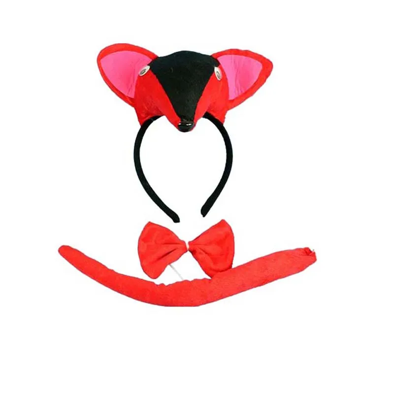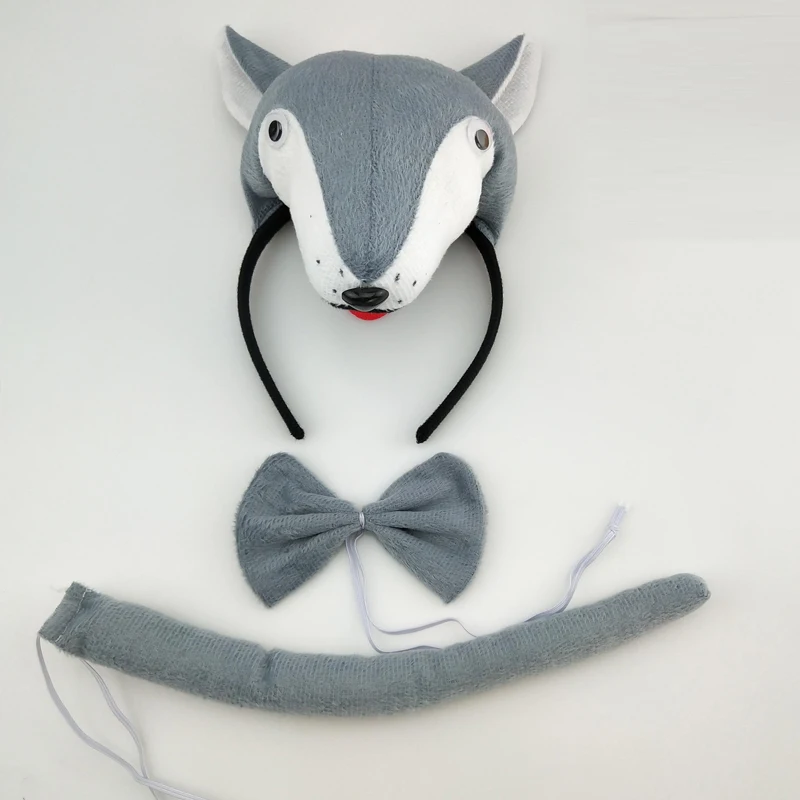 Плюшевый 3D ободок с животными для мальчиков и взрослых и детей, волк, лиса, повязка на голову, галстук-бабочка, хвост, костюм, реквизит для вечерние ринки, Рождество, Пасха, День Св. Валентина