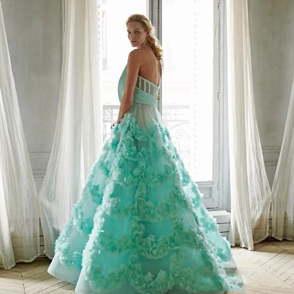 Модные бирюзовое фатиновое 3D, трапециевидный силуэт, цветочный узор; Женские платья медового месяца Вечерние Длинное платье для принцессы, красивые фатиновые платья для выпускного вечера