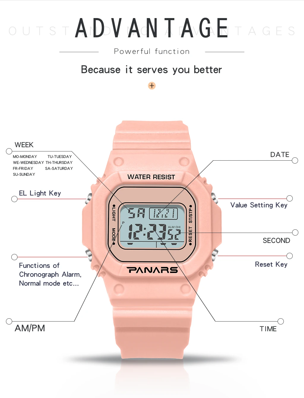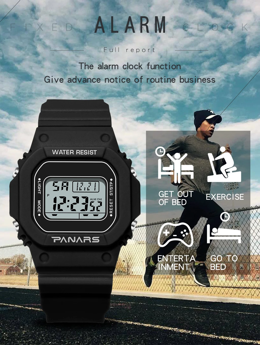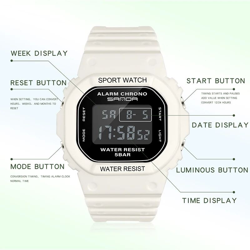 Часы наручные SANDA мужскиеженские, брендовые СВЕТОДИОДНЫЕ Цифровые многофункциональные, в стиле милитари, с секундомером, с будильником
