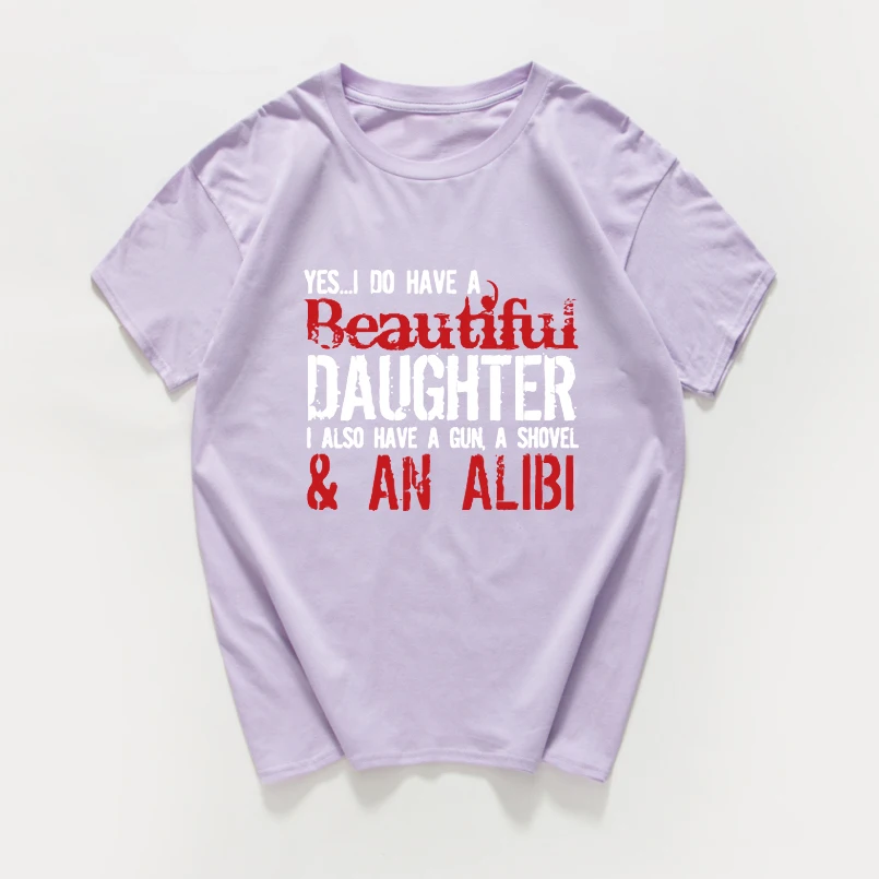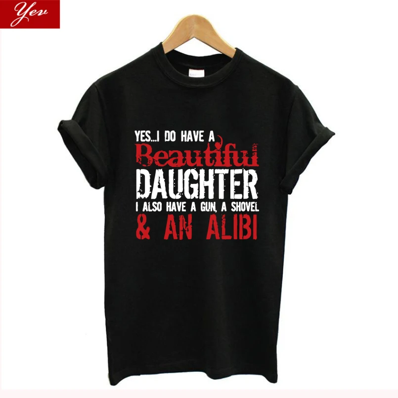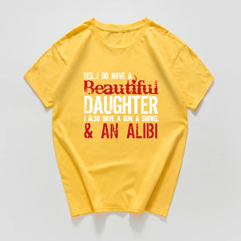 Забавная женская футболка да, у меня есть красивая дочь, у меня также есть пистолет, летние топы большого размера, футболка из 100% хлопка, женская одежда