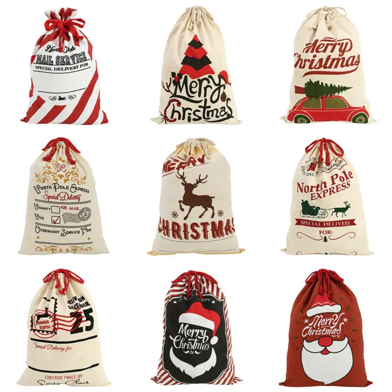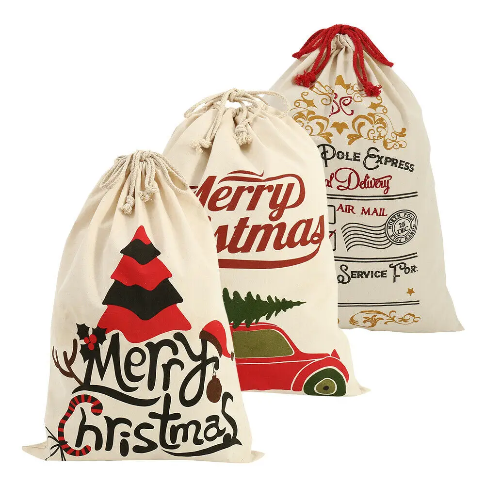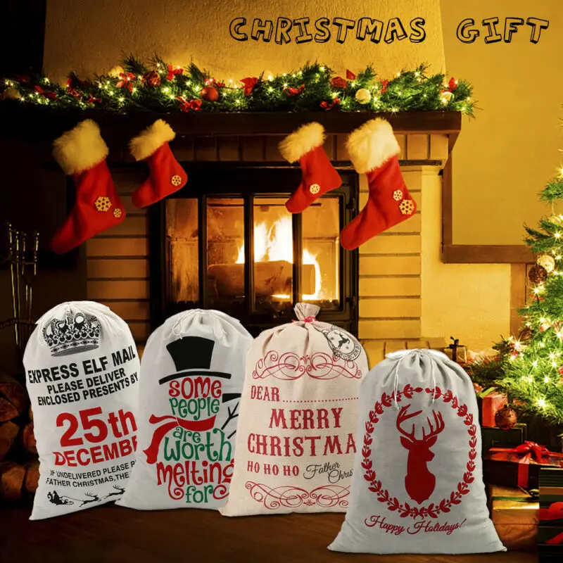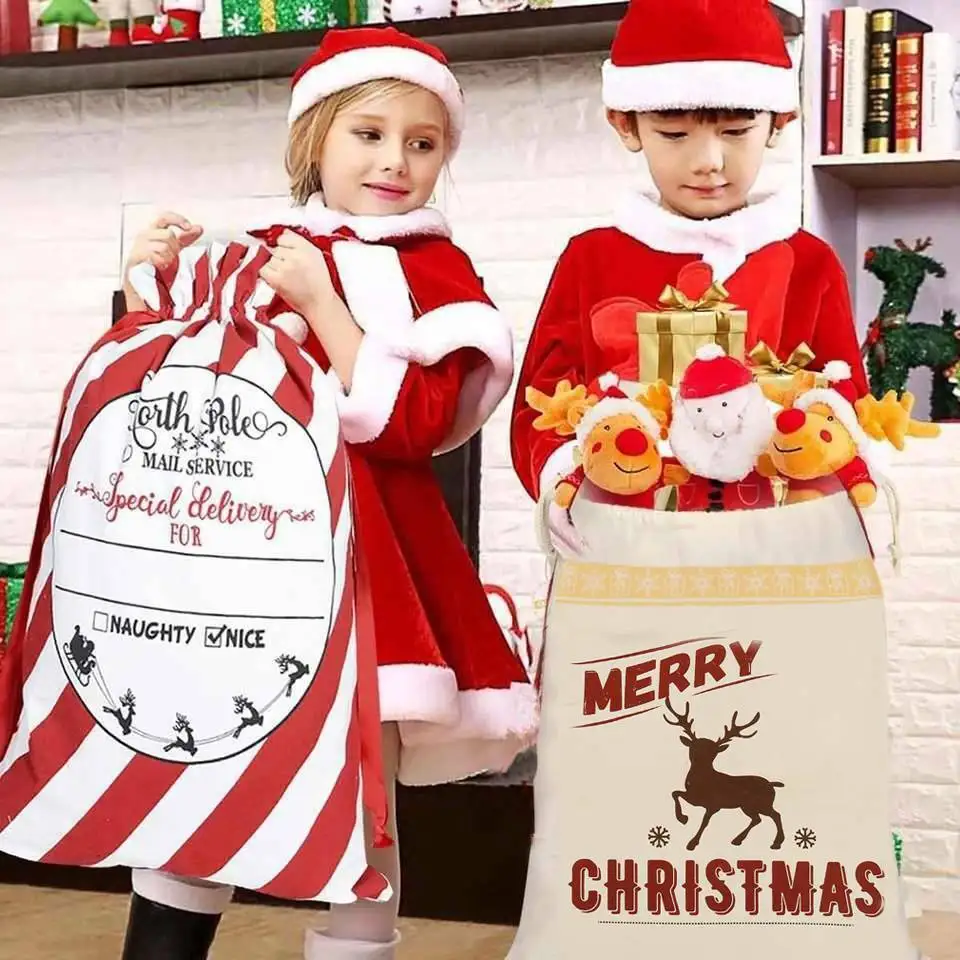 Вместительные холщовые рождественские сумки Jumbo, хлопчатобумажная сумка для подарков в виде Санты и Рождества