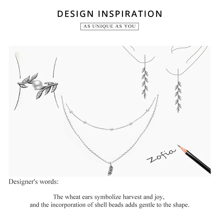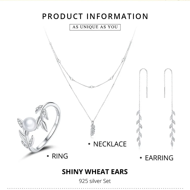 Набор из кольца и серег и ожерелья bamoer, ювелирные украшения из стерлингового серебра 925 пробы с блестящими пшеничными ушками и кубическим цирконием для женщин, изящный Свадебный комплект Jwelry ZHS219