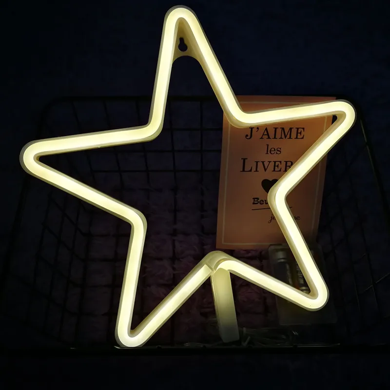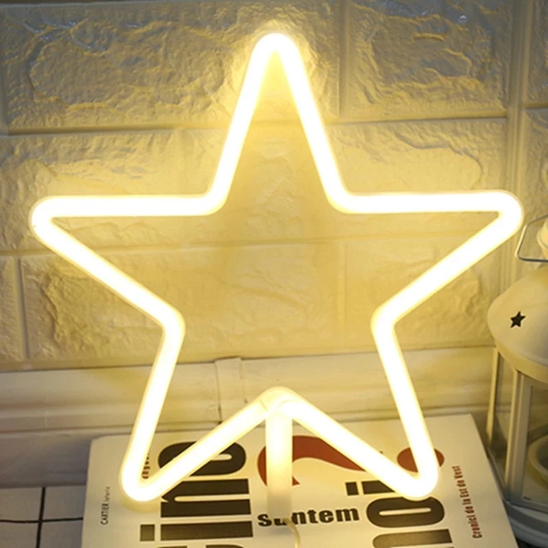 Светодиодная неоновая гирлянда со звездами, огни, огни, гирлянда, гирлянда с питанием от USB, работает от батарейки для помещений, спальни, стены, Рождественское украшение для свадебной вечеринки