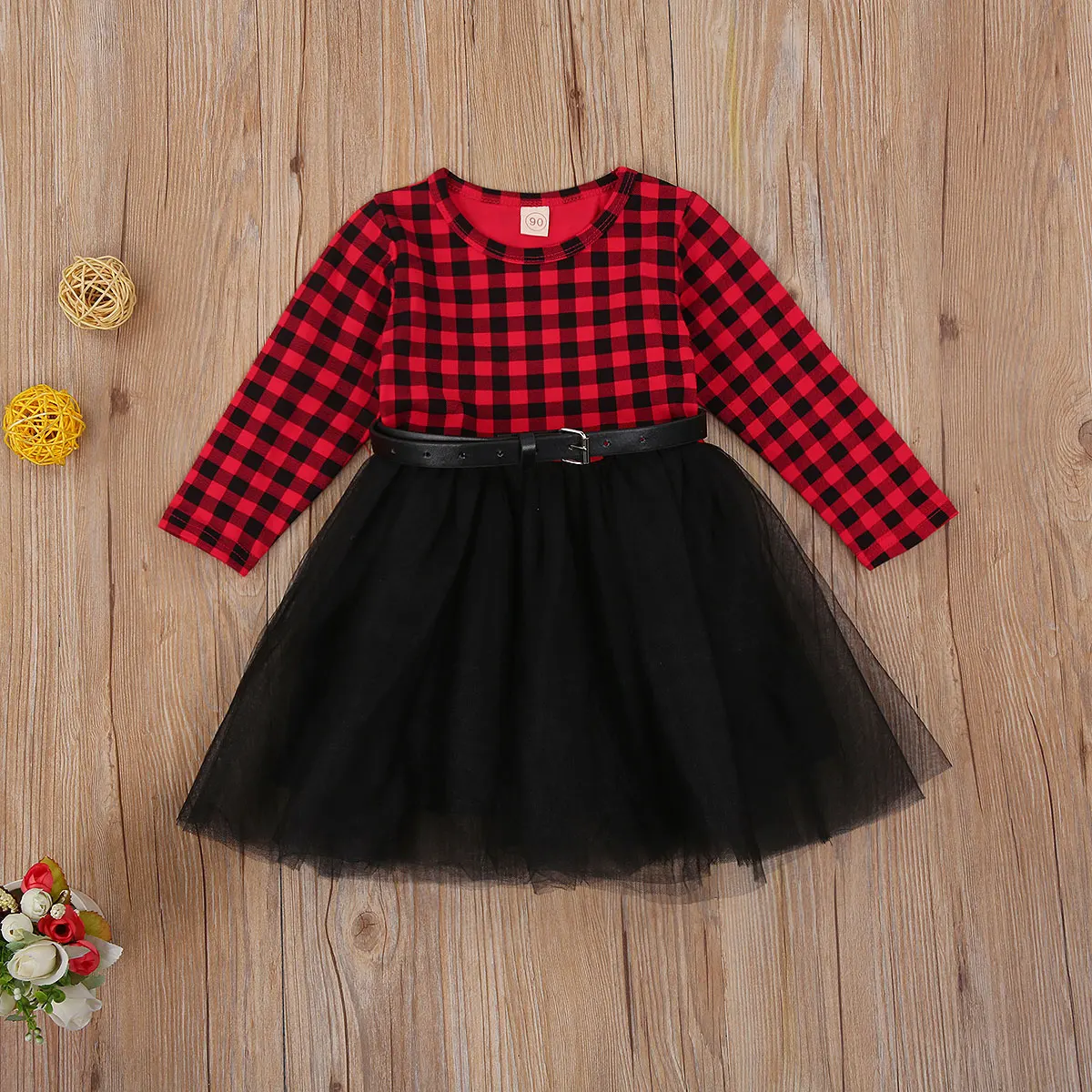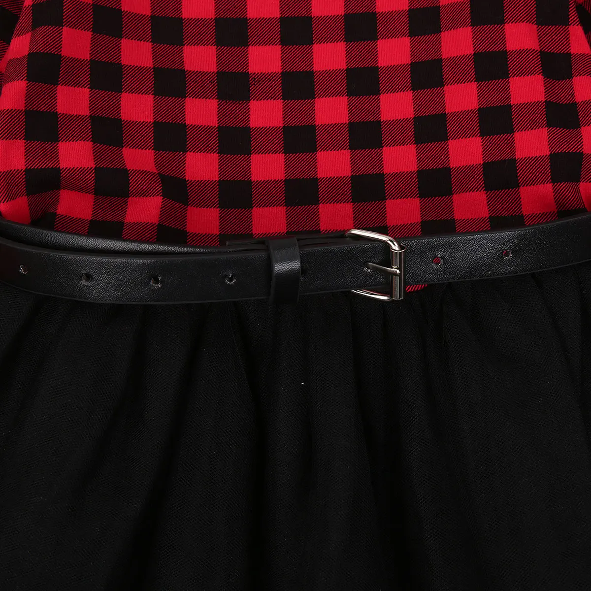 Рождественское платье для маленьких девочек, красное клетчатое платье с длинным рукавом, топ на одной пуговице, рождественское платье, кружевное платье-пачка с поясом и подкладкой, на возраст 1-6 лет