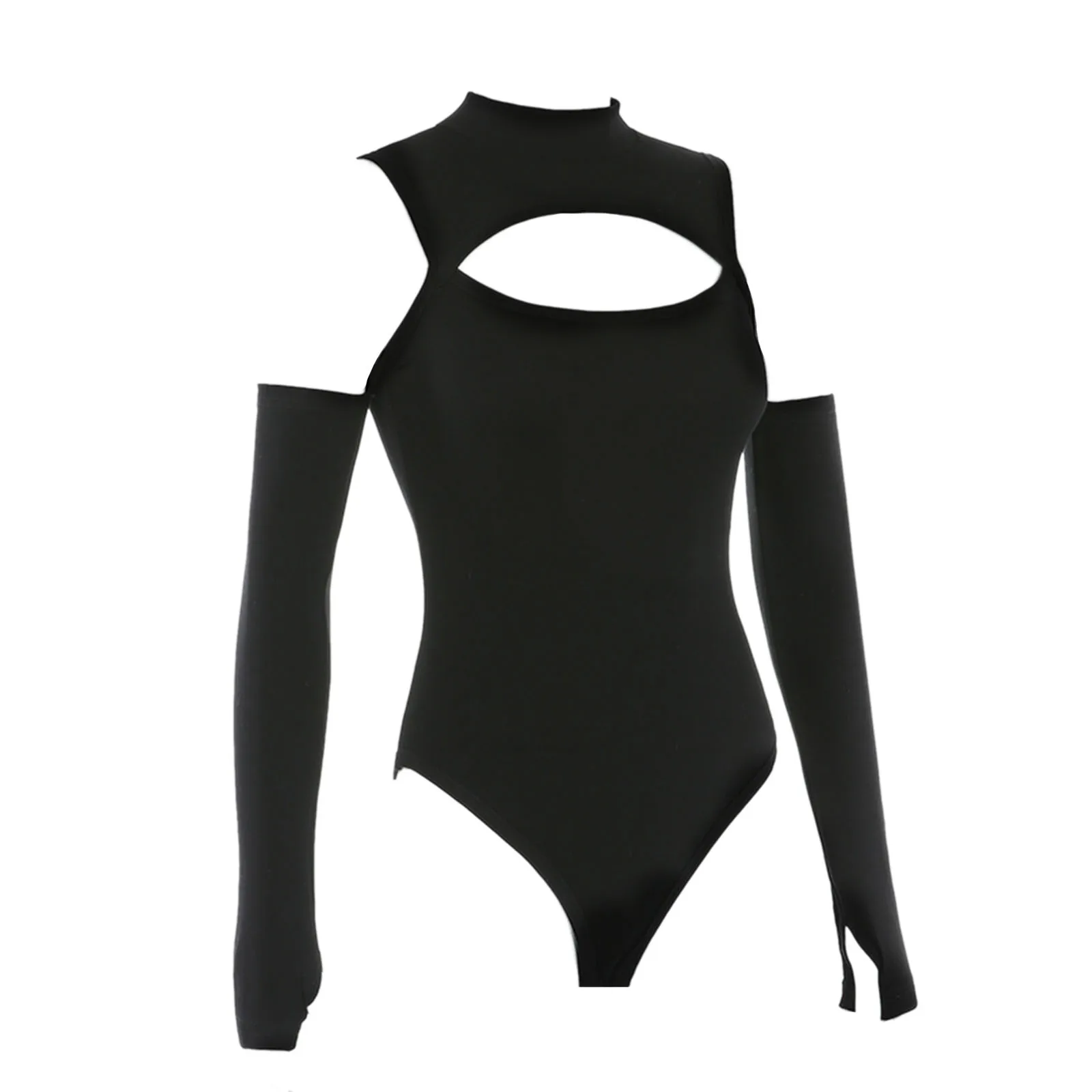 Соблазнительное женское осеннее боди с длинными рукавами, модный однотонный комбинезон с открытыми плечами и высоким воротником, одежда для дна