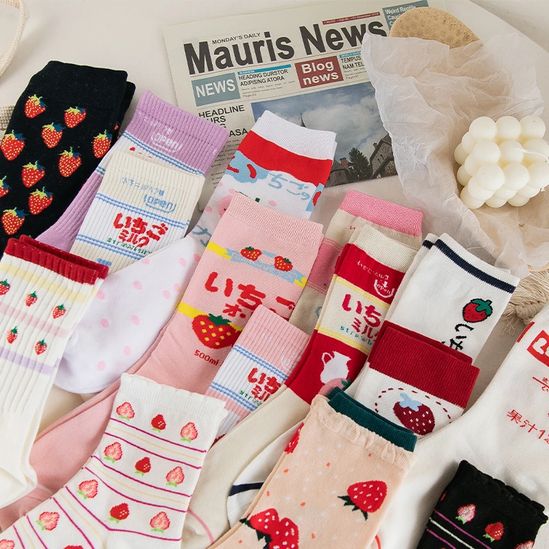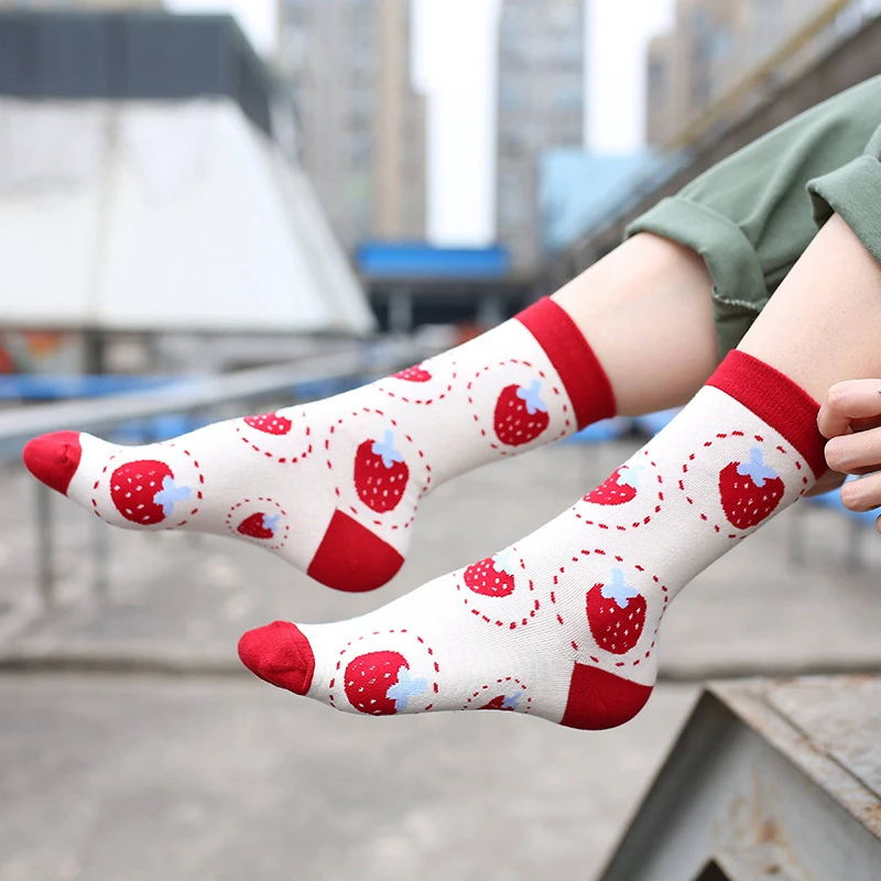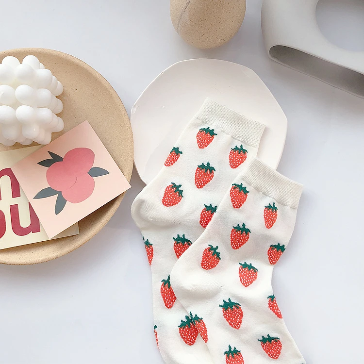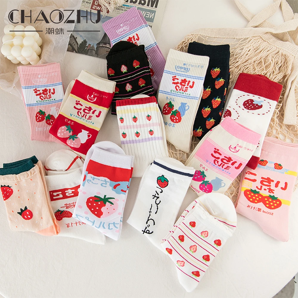 Носки CHAOZHU женские хлопковые в японском стиле, с рисунком клубники