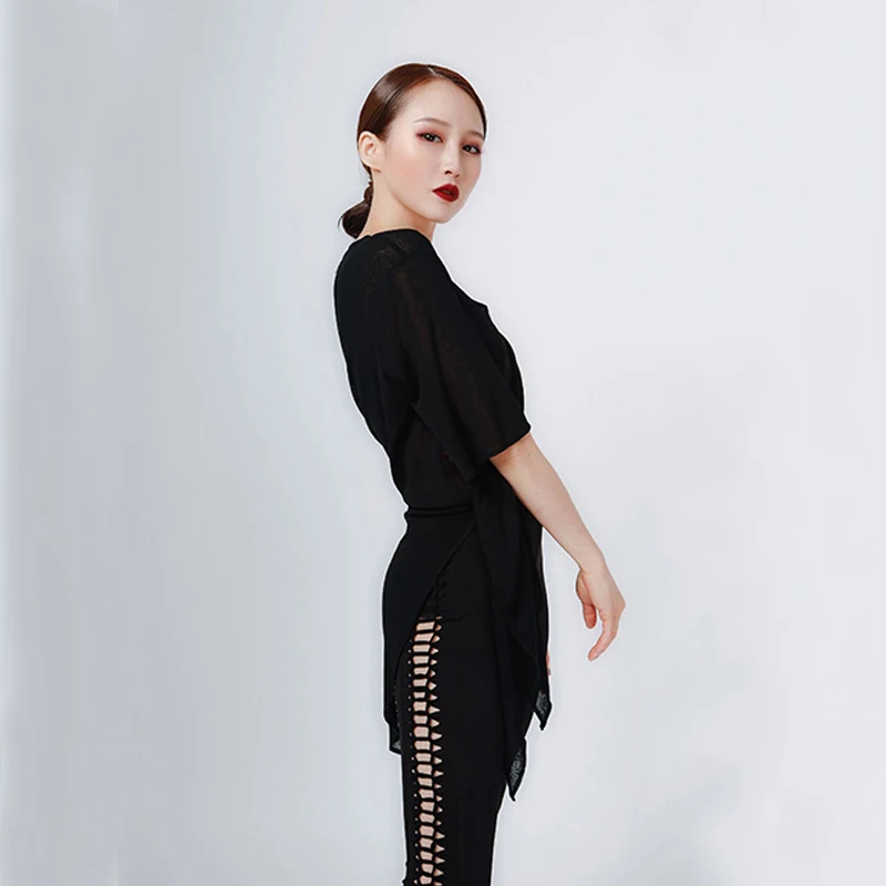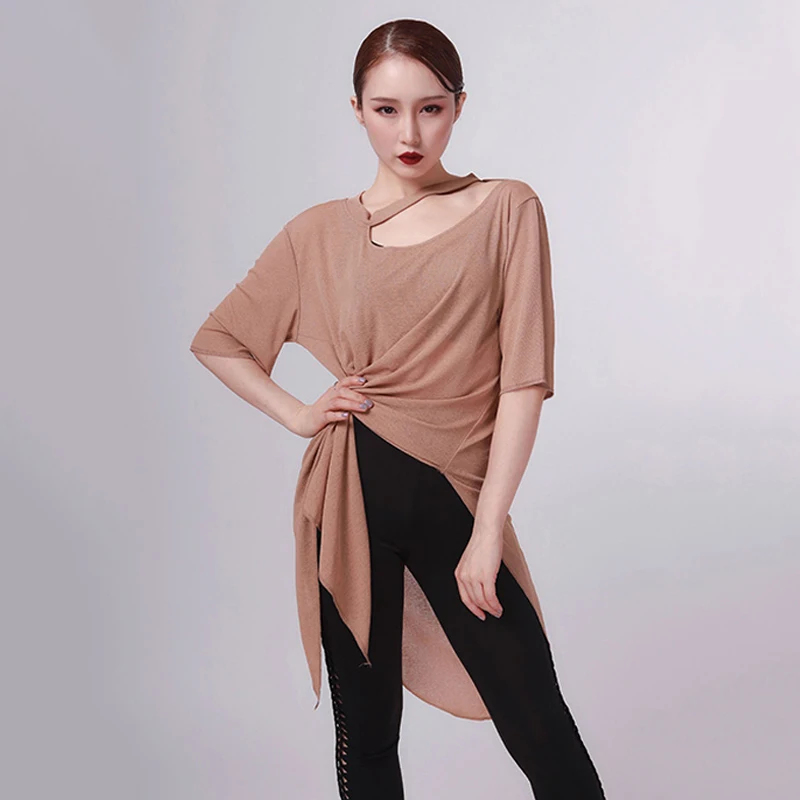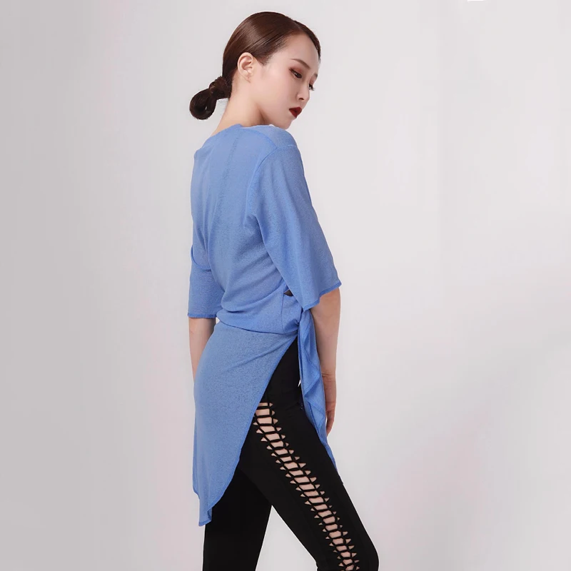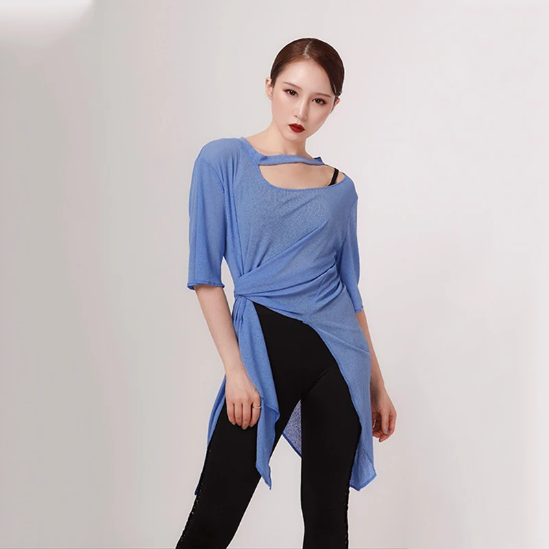 Топы для латиноамериканских танцев, свободная повязка с круглым вырезом, асимметричная длинная рубашка для латиноамериканских танцев, Новая женская одежда для тренировок, Самба, Румба, ча-ча, DNV14126