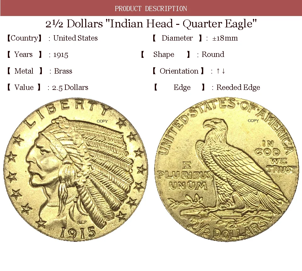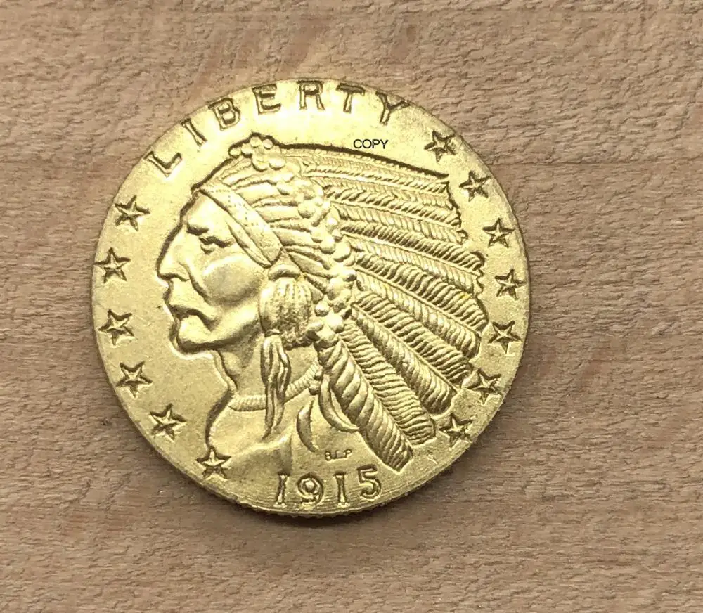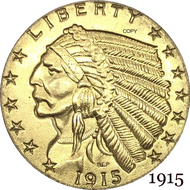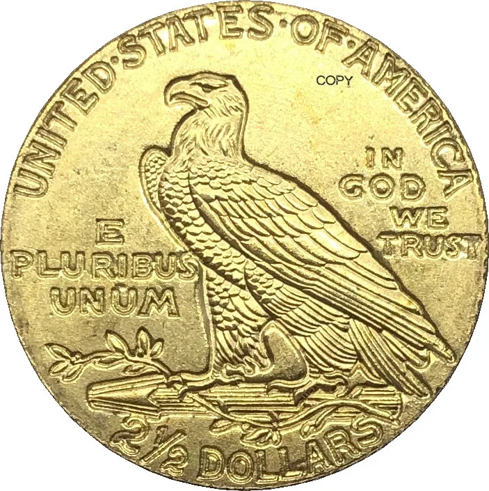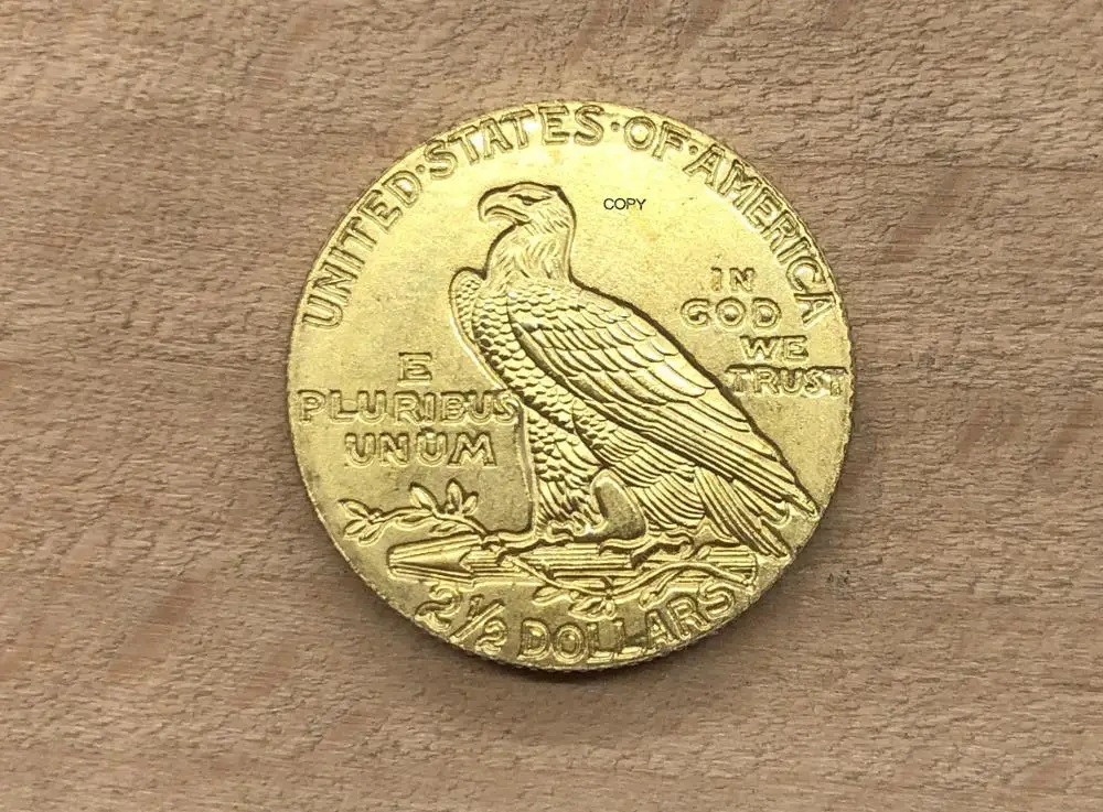 США 1915 2 доллара 2,5 дюйма, индийская голова четверть Орел США свободы долларов США, Бог, мы доверяем, Золотая копия, монета, латунный Металл