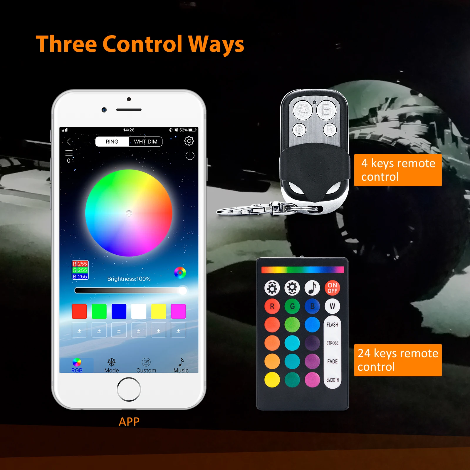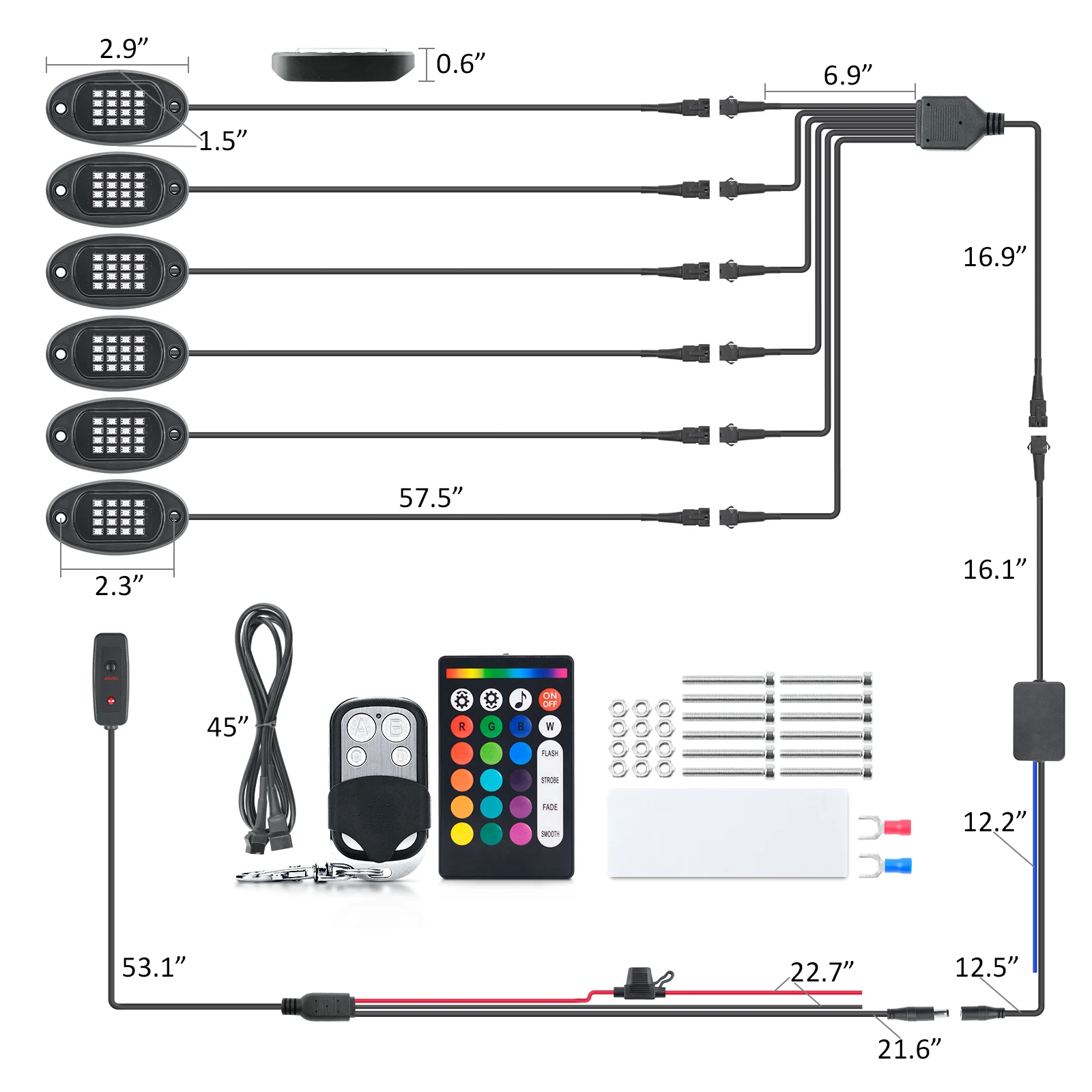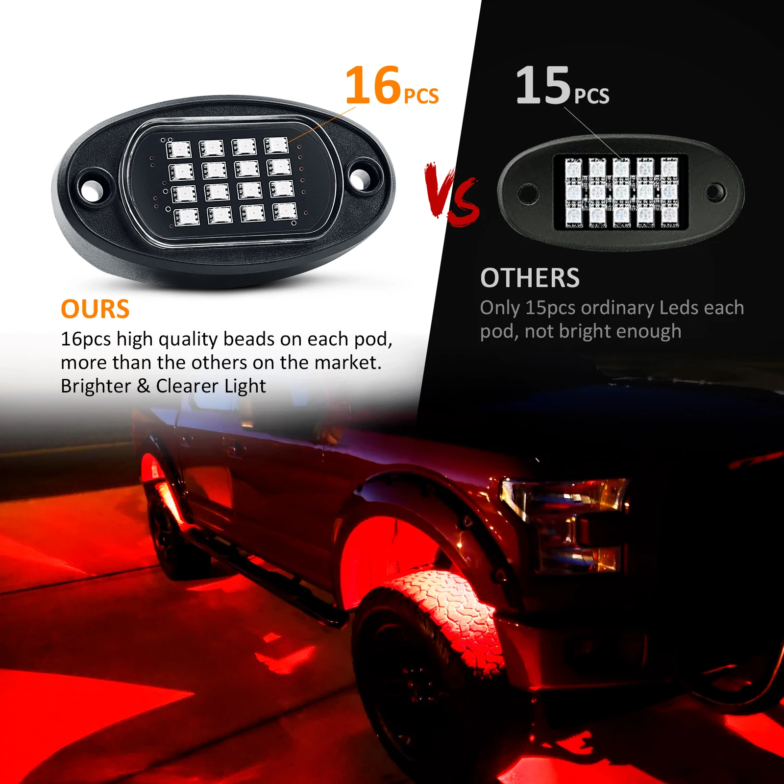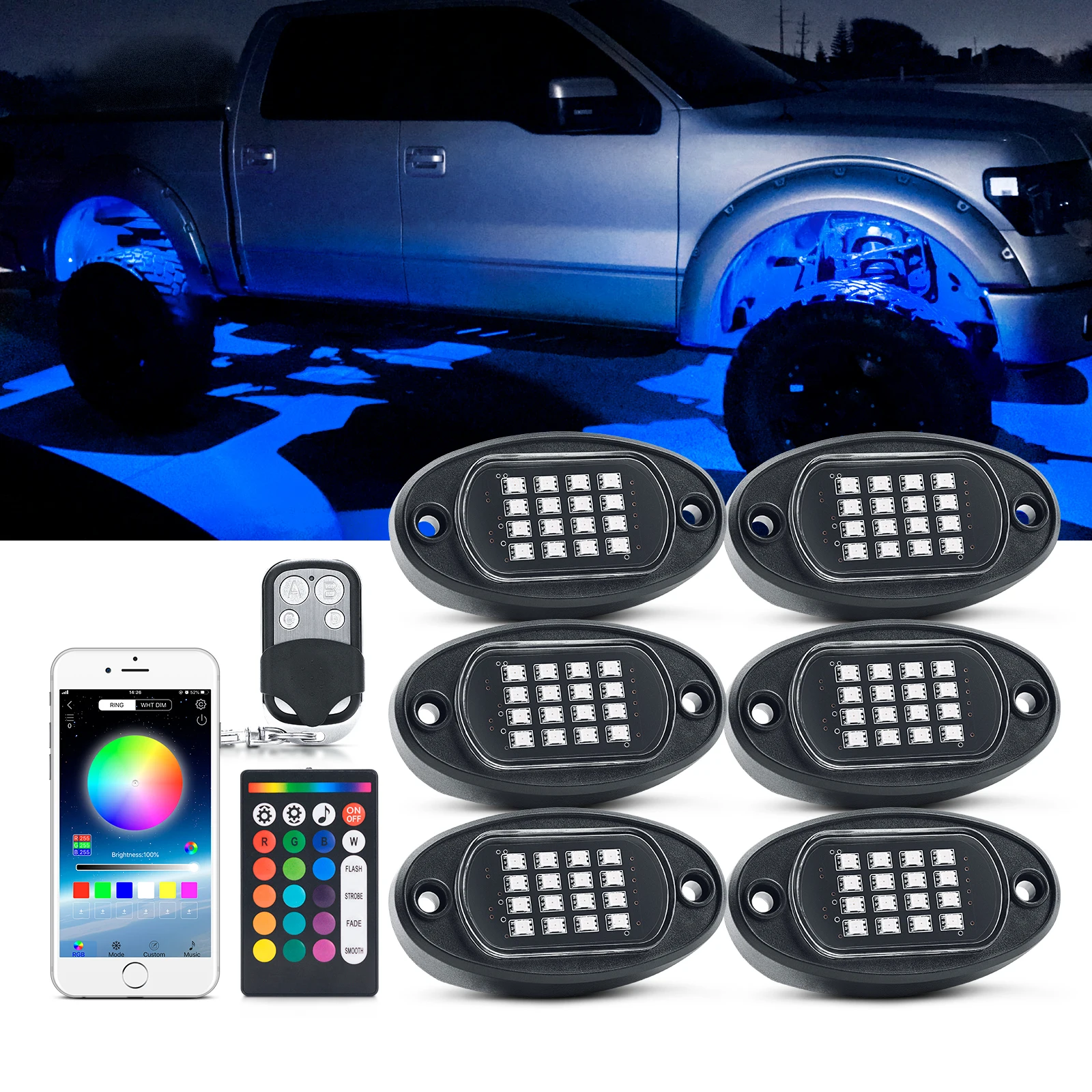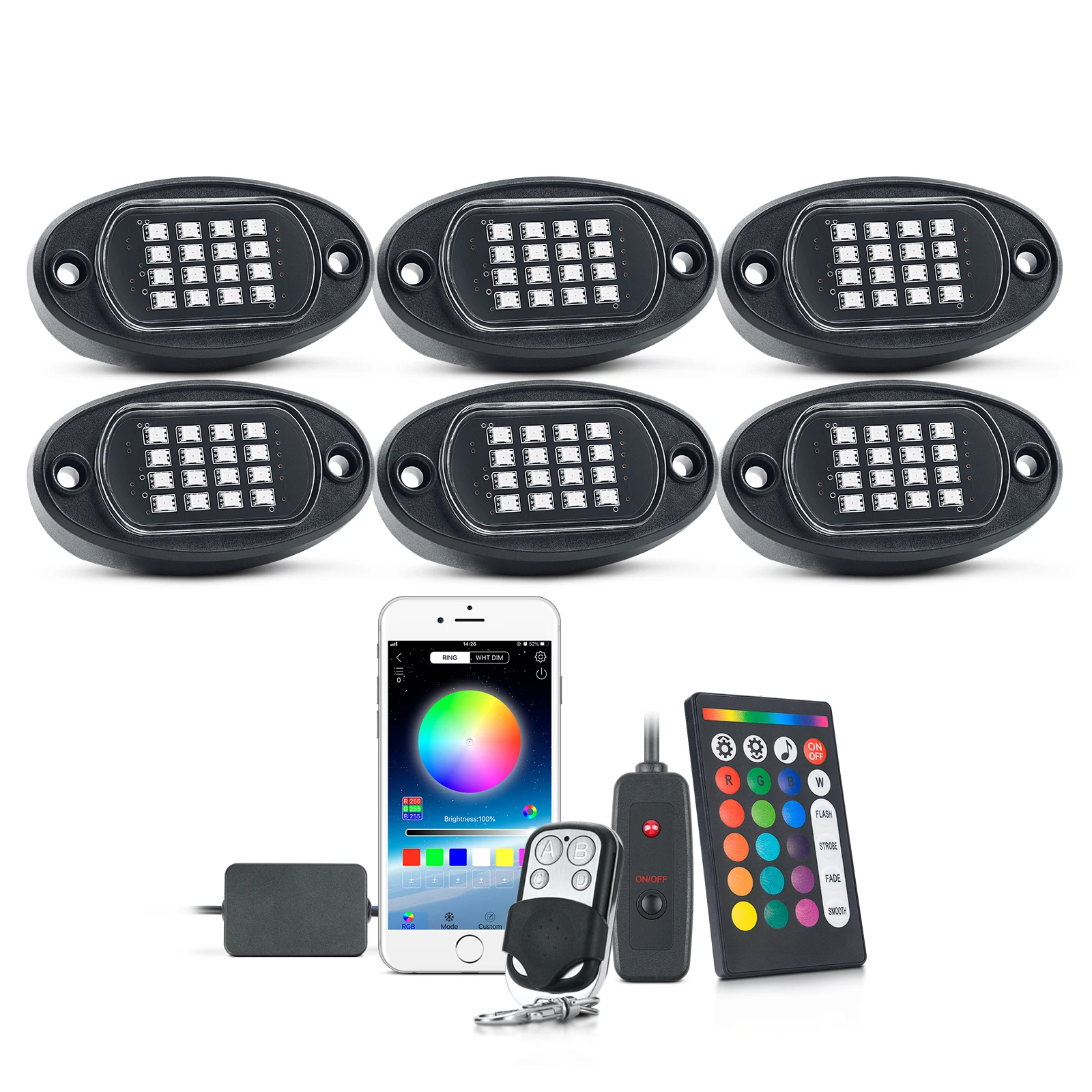 1. Три способа управления-RGB светодиодный фары Рок может быть управления Светодиодный APP, 4 клавиши РФ Пульт дистанционного управления и 24 клавиши РФ Пульт дистанционного управления. Вы можете легко включать/выключать светильник, регулировать яркость и скорость стробоскопа, Режим музыки и другие функции настройки2. Более высокая яркость и более широкое освещение-С 16 высококачественными бусинами на каждой капсуле (всего 96 светодиодов), больше, чем другие на рынке. Улучшенный светодиодный чип, более яркий и четкий источник освещения, более энергосберегающий. Каждый светильник pod снимает ультра-широкий светильник до 150 °, освещает нижнюю часть вашего автомобиля3. RGB разноцветный и музыкальный режим-Более 16 миллионов цветов DIY для вас, чтобы выбрать и осветить ваше настроение. Встроенный высокочувствительный микрофон, светильник изменится с ритмом музыки, включая медленную, расслабляющую мелодию и танцевальную музыку. Раскачивайте его, позвольте вам веселиться на дороге4. IP67 водонепроницаемая и прочная конструкция-IP67 водонепроницаемый, ударопрочный, пыленепроницаемый, устойчивый к коррозии. Прочный пластиковый корпус и прочная линза, быстрая теплоотдача, До 50000 часов срока службы5. Широкое использование-RGB рок-фонари могут широко использоваться в автомобилях, внедорожниках, грузовиках, квадроциклах, UTV, внедорожниках, квадроциклах, лодках и так далее, также используются для интерьера, Купола, неоновых огней, лампы для яхты и т. Д. Может быть установлен на плоской поверхности под вашим автомобилемДавайте танцевать с музыкой, давайте раскачиваться с RGB светодиодный Рок-Свет!Каждый рок-светильник pod имеет 16 SMD бусин, Высококачественная светодиодная микросхема, обеспечивает более яркий светильник s и низкое энергопотребление.Он снимает 150 градусов ультра-широкоугольный светильник, больше и ярче области облучения, чем другие rgb рок-светильник s.Эти огни обеспечивают яркое освещение вокруг транспортного средства. Они выглядят потрясающе, и вы получите так много комплиментов на них!Подходит для большинства автомобилей, внедорожников, 4X4, грузовиков, ATV / SUV, лодок, мотоциклов и т. д. может быть применен к шасси светильник s, светильник палубы s, окружающий светильник.Простота в использовании:Можно управлять с помощью приложения, 4 ключ дистанционный пульт и 24 ключ дистанционный пульт. Пульт дистанционного управления очень прост и полезен, отвечает вашим требованиям.Отсканируйте qr-код в руководстве пользователя или поле управления, чтобы загрузить приложение LEDBle для установки, следуя инструкции и подключите bluetooth-устройство для установки собственного эффекта освещения.DIY Стиль, RGB16 миллионов цветов, выбор бесконечен! Легко DIY световые эффекты, чтобы добавить уникальный стиль к вашему автомобилю. Регулируемая яркость, скорость стробоскопа, Функция синхронизации, музыкальный режим.Пришло время испытать вашу музыку в совершенно новый светильник. Набор рок-ламп будет следовать ритму вашей музыки, чтобы светиться, что может принести вам идеальный музыкальный опыт.Теплое примечание:1. Не кладите блок управления рядом с двигателем или в горячие места.2. Контроллер не является водонепроницаемым, пожалуйста, установите его там, где можно избежать дождя.3. Перед подключением к источнику питания, пожалуйста, сначала Подключите все огни, чтоб