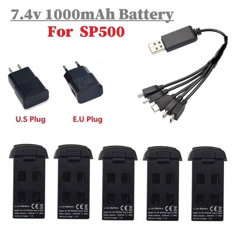 Оригинальный 7,4 V 1000mAh Lipo аккумулятор с зарядным устройством для SP500 Drone RC Quadcopter, запасные части для батареи SP500