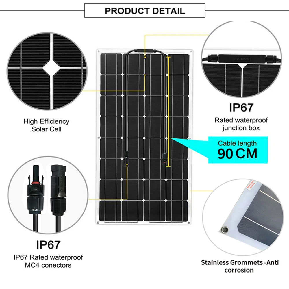 Эта Высокоэффективная Гибкая Водонепроницаемая монокристаллическая солнечная панель мощностью 100 Вт идеально подходит для постоянного использования на открытом воздухе и обеспечивает бесплатное электричество для зарядки аккумуляторов 12 В для питания различных приложений, таких как автодом, караван, кемпер, лодка, или для солнечных осветительных систем, автономных и резервных систем солнечной энергии. Обратный контакт солнечных батарей сКПД до 22%Сделайте эту панель идеальной для приложений, где пространство ограничено или есть препятствия на крыше. Панель также может быть использована для обеспечения прямого питания для приложений, не чувствительных к изменениям входного напряжения/тока (например, электродвигателей или насосов) и для различных применений сетевого соединения.