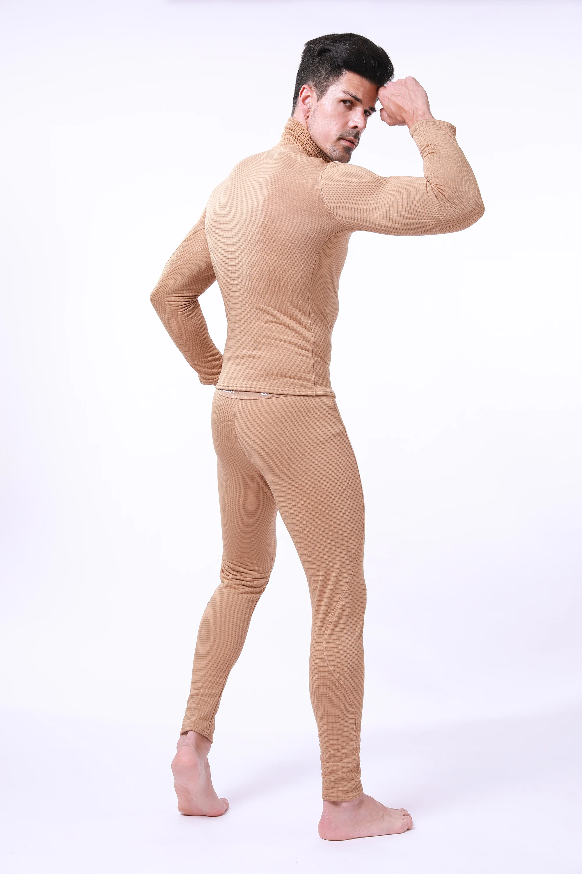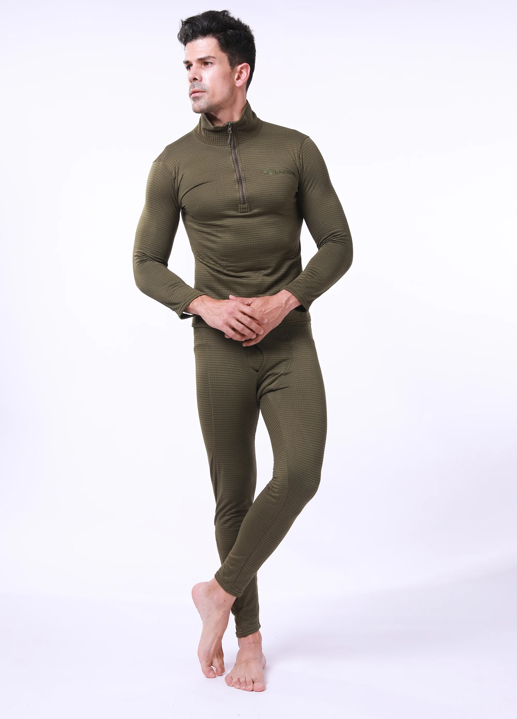 Комплект мужского однотонного термобелья, на молнии, с длинным рукавом
