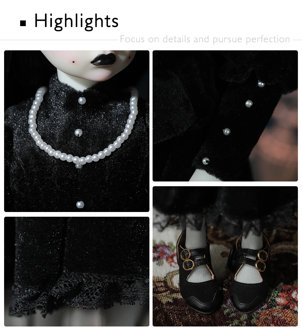 1. Сила команды: фокусируясь на кукле BJD более 10 лет, интегрируя НИОКР, дизайн, производство и продажи; Владеет оригинальным старшим художником, моделями, комода, визажистом, от создания, дизайна, формы, формовки, шлифовки, макияжа, А затем для дизайна одежды и производства до сотен рабочих процедур, таких как шитье, моделирование, все завершено опытными мастерами, каждый стиль, представленный вашей кукле BJD, имеет уникальную и эстетическую ценность искусства.2. Отборные высококачественные исходные материалы: отборная Высококачественная смола, изысканная и гладкая, приятная на ощупь.3. Изысканный трехмерный макияж: профессиональная команда макияжа, усовершенствованная технология ручного спрея для создания Реалистичного нежного макияжа!4. Изменяемая модель «сделай сам»: гибкие соединения, сильная пластичность, различные части можно преобразить по желанию и позе; Также можно сменить макияж, одежду, глаза, волосы и укладку.5. Индивидуальная настройка: ручная работа, в соответствии с вашими требованиями, сделает вашу эксклюзивную куклу BJD.6. Изысканная подарочная упаковка: официальная Изысканная упаковочная коробка бренда, Подарочная новая сфера, более красивая и достойная.