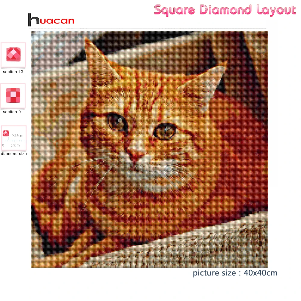 Алмазная живопись Huacan 5D сделай сам, картина с изображением апельсинового кота для украшения дома, мозаика для вышивки стразами