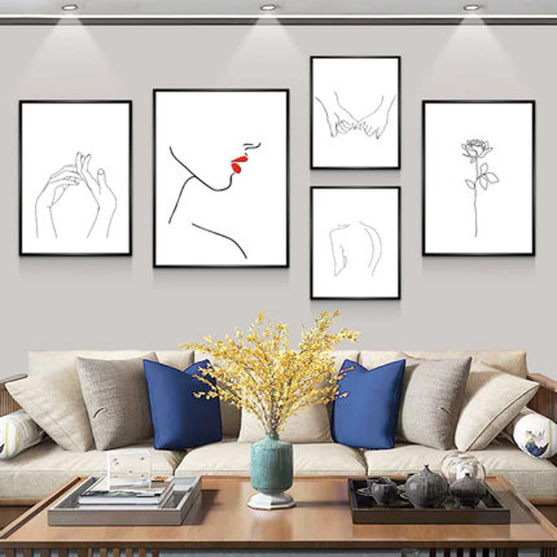 Абстрактная леди Рисование изображение линии домашний декор Скандинавская живопись на холсте искусство на стену фигурка тела руки плакаты и печать для гостиной Roo