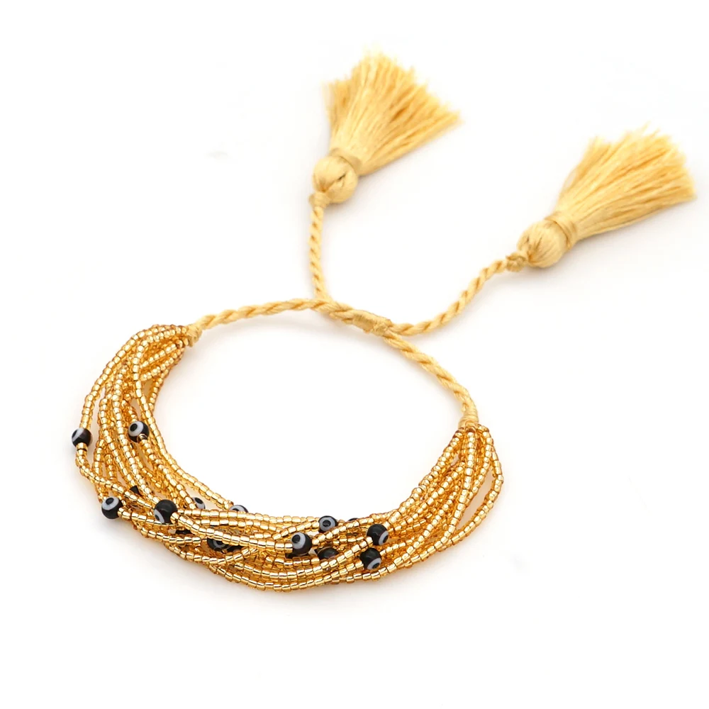 Многослойный браслет Go2boho для женщин, ювелирные изделия в стиле бохо, браслеты с кисточкой от сглаза, Модная бижутерия с бусинами, Регулируемая Веревка