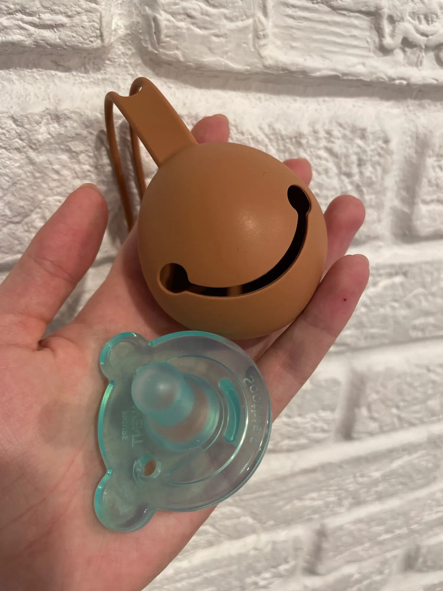 Мягкий силикон. Удобный держатель для коляски или сумки. Очень Маленькая часть сосков. Больше для рта новорожденного