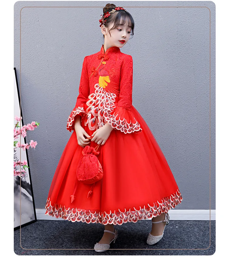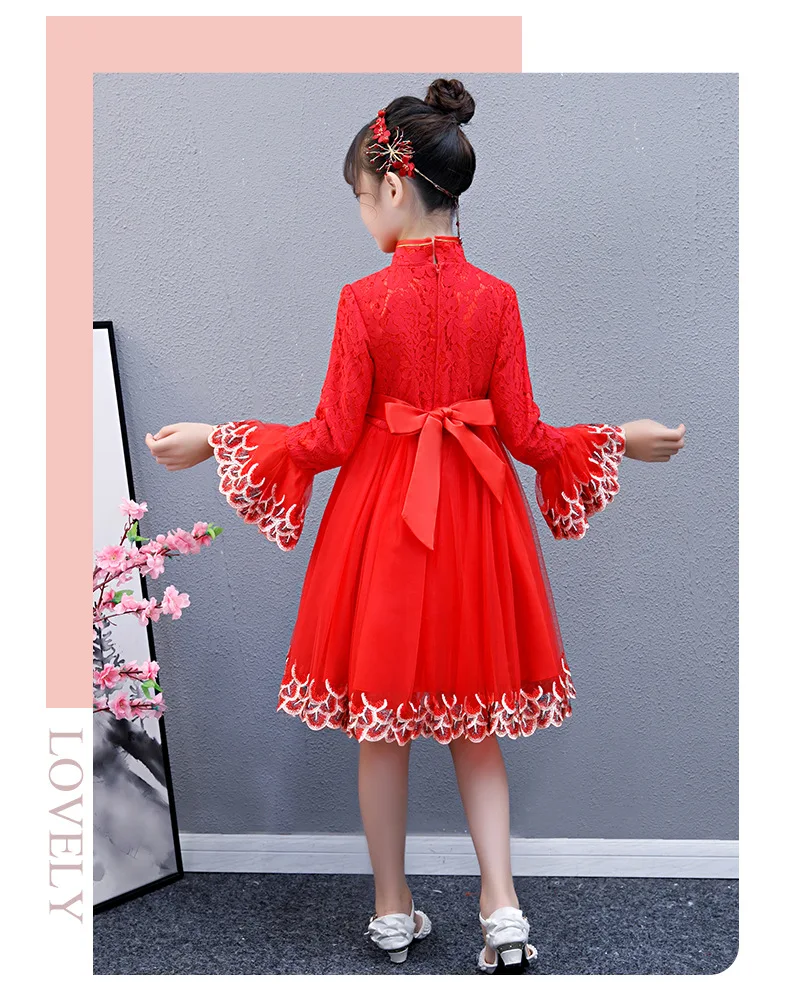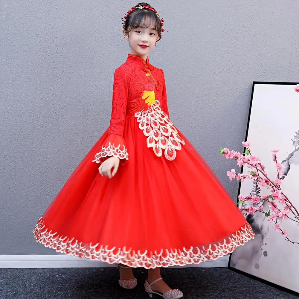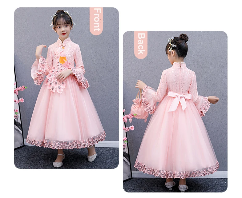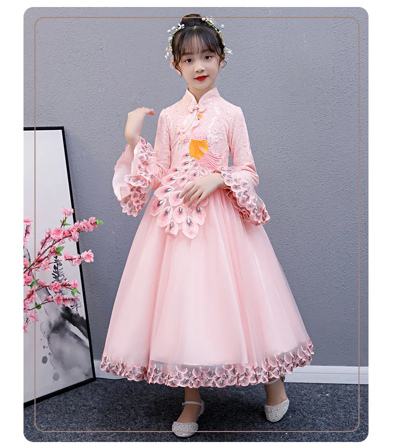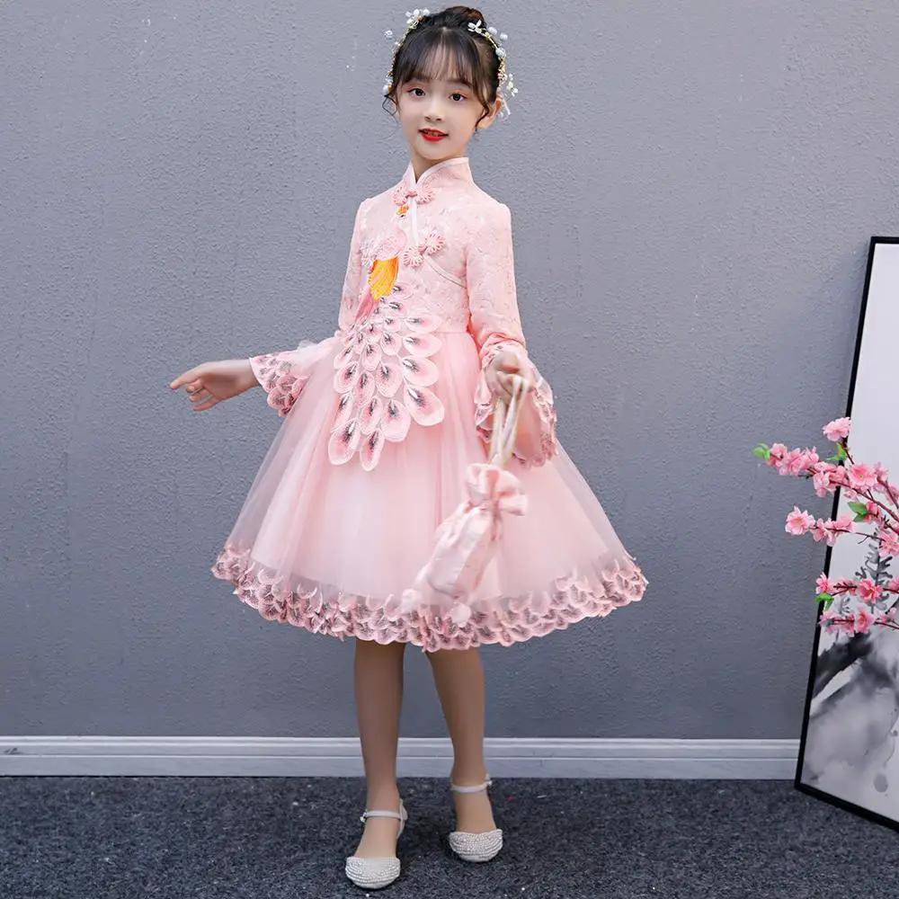 Платье-Ципао с вышивкой в китайском стиле, для девочек