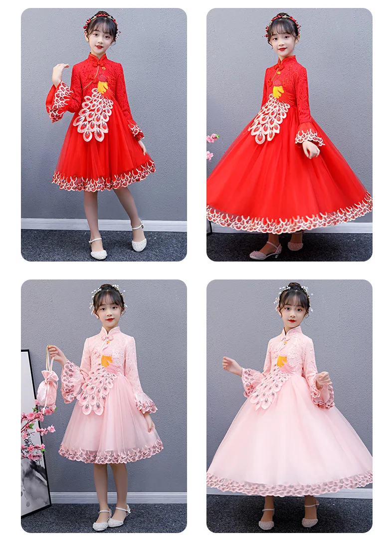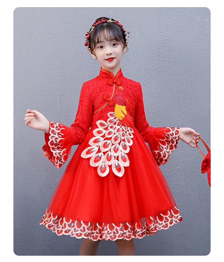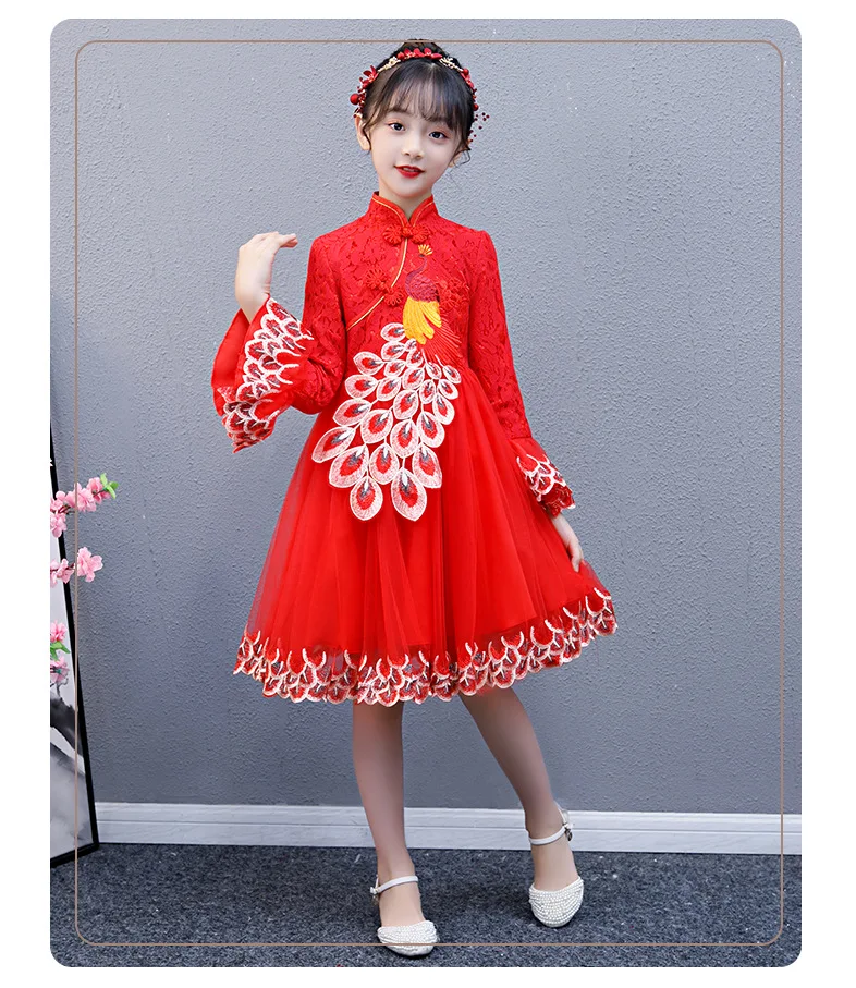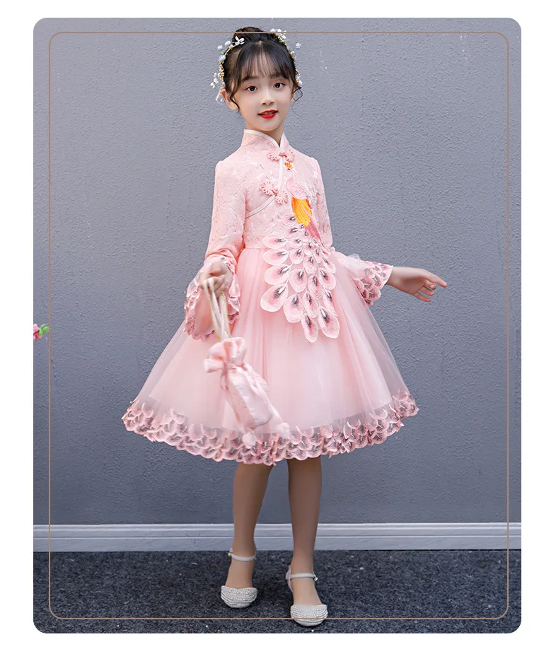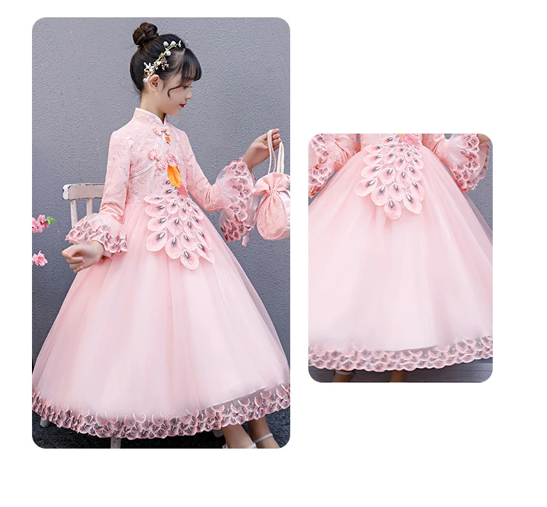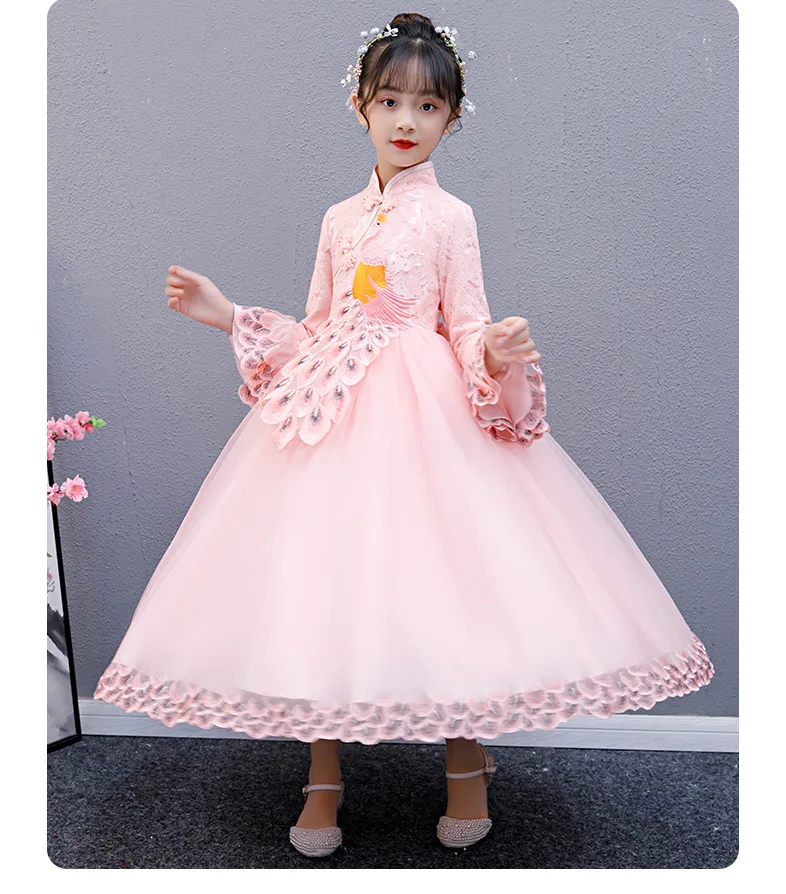 Платье-Ципао с вышивкой в китайском стиле, для девочек