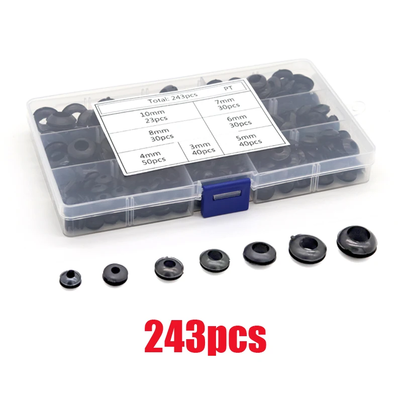 243Pcsbox Rubber Grommet Gasket Kits for Wire Cable Black Assortmen...