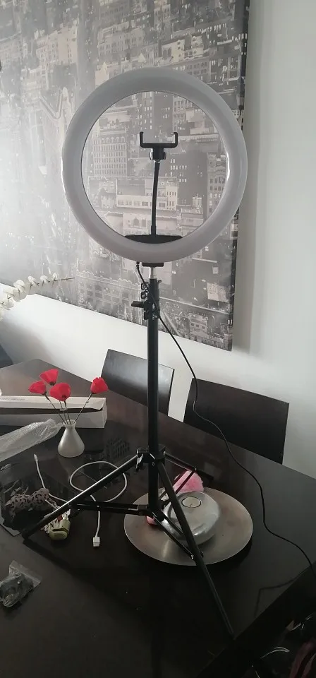 Так. Собирается очень легко. Потратила на это секунд 40. Все работает исправно. Сама конструкция средней хлипкости. Светит конечно не так как профессиональные лампы. Для домашнего пользования сойдёт. Пришло быстро. Недели две с Китая. На первом фото без света. Второе фото белый свет. Третье фото естественный свет. Четвёртое фото желтый свет.