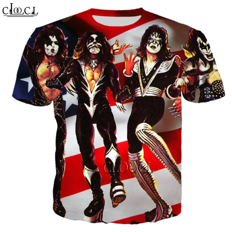 Футболка HX в стиле унисекс, уличная одежда в стиле хип-хоп, рок-группы KISS, повседневный пуловер с коротким рукавом и 3D-принтом в стиле Харадзюку, Прямая поставка