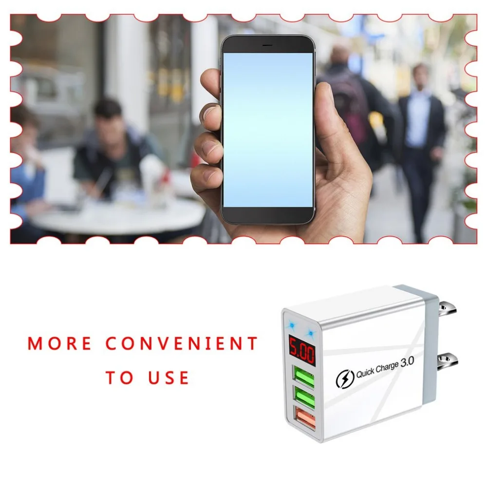 С 3 портами (стандарт цифровой мобильный телефон Зарядное устройство цифровой Дисплей Быстрая зарядка настенный телефон Зарядное устройство, быстрая зарядка, мобильный телефон адаптер