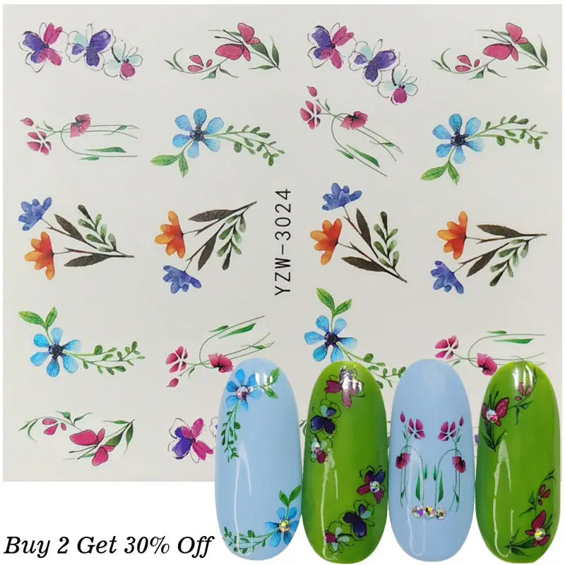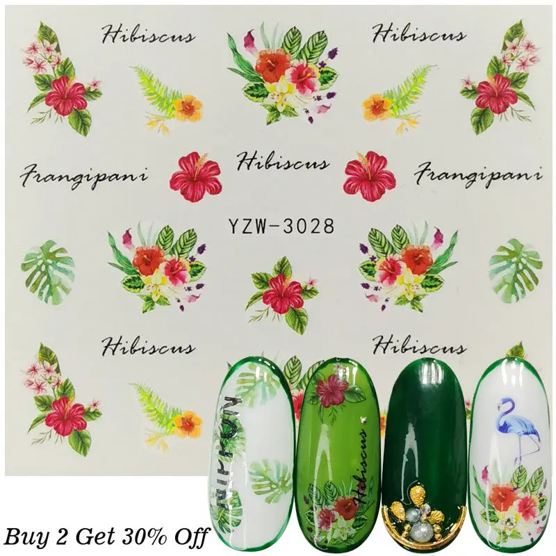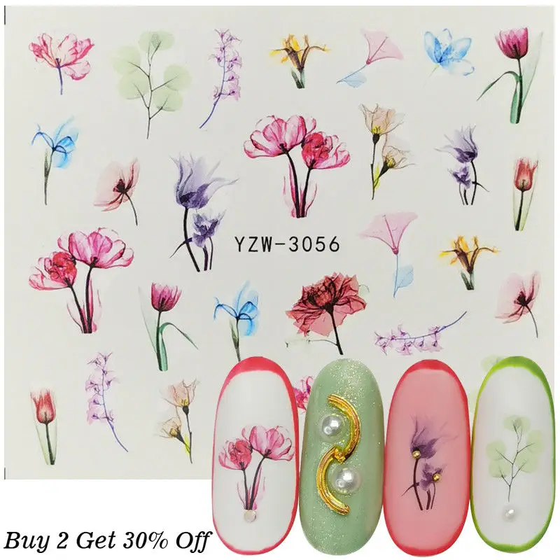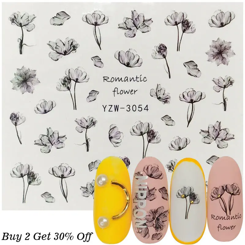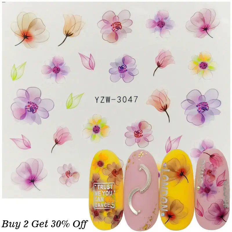 1 лист наклеек для ногтей 3D цветок листья слайдер водные переводны...