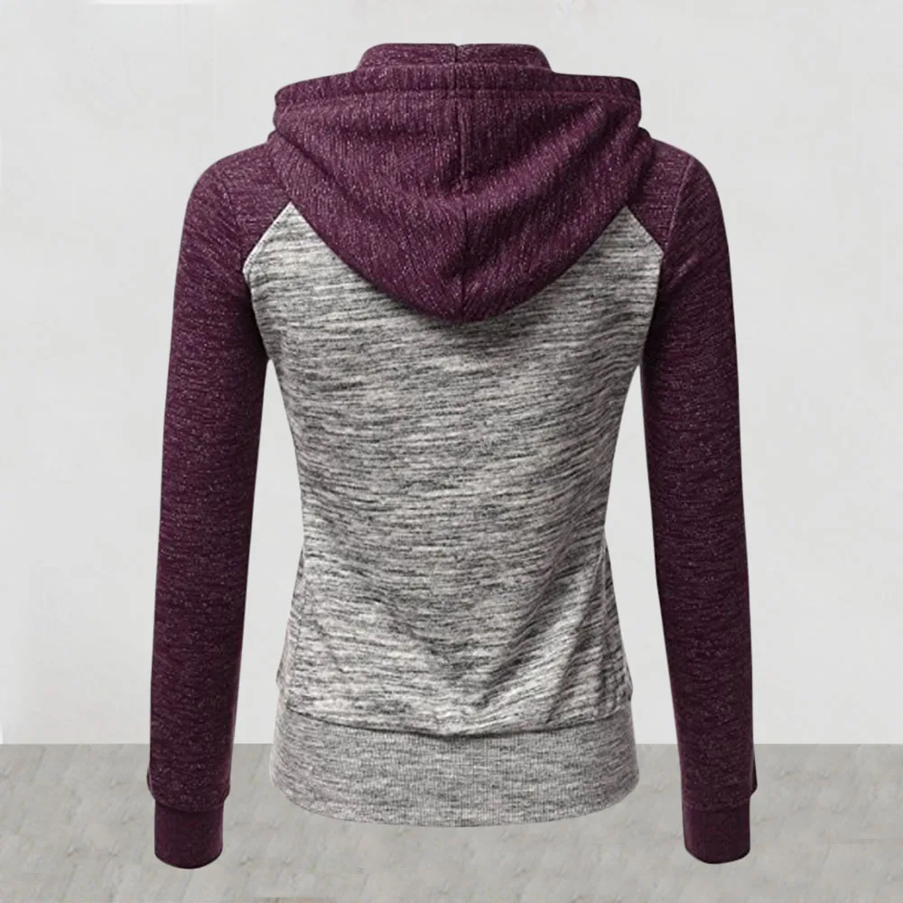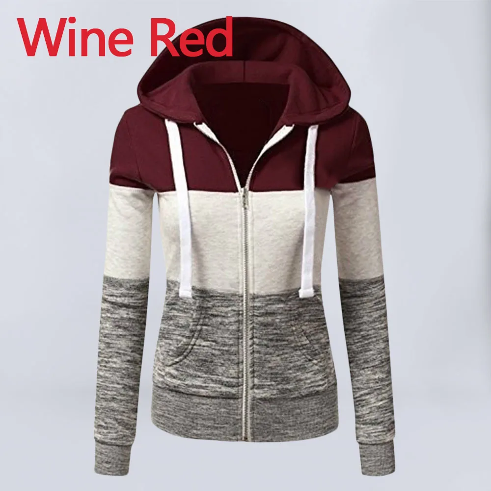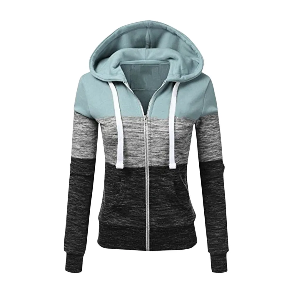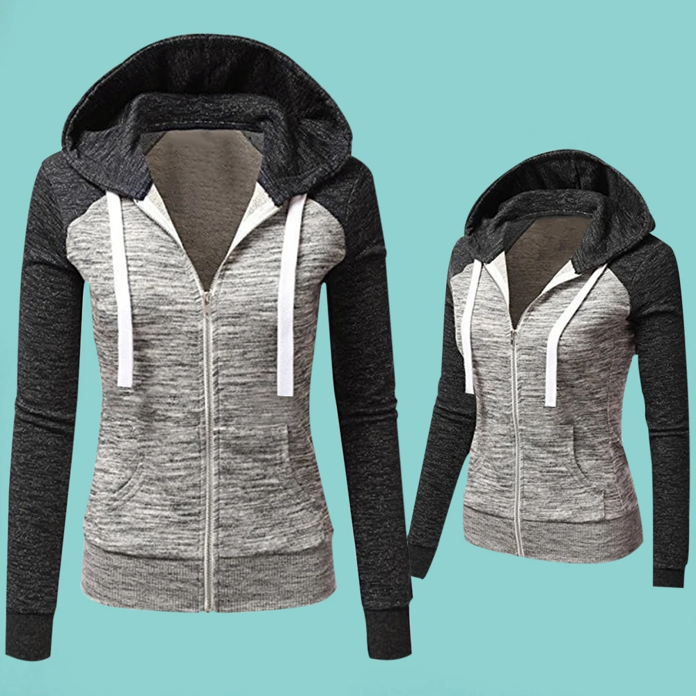Худи женское в стиле пэчворк, повседневная кофта на молнии с капюшоном, пуловер с длинным рукавом и карманами, верхняя одежда, осень-зима