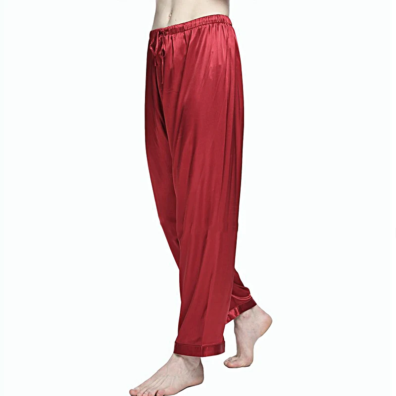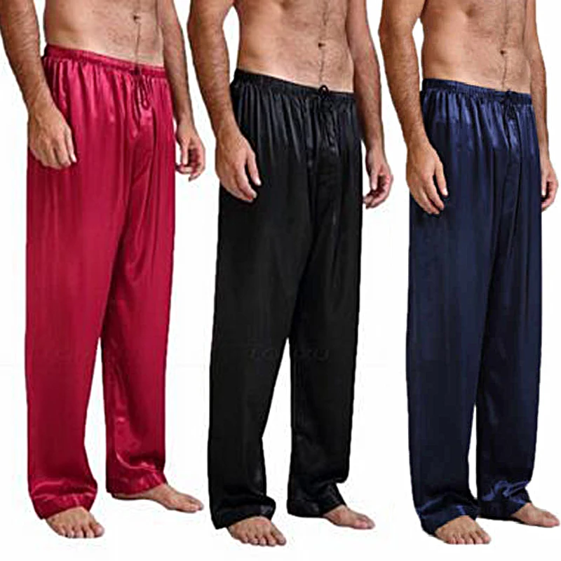 Новинка, Лидер продаж, модные мужские однотонные пижамы из шелка и полиэстера, длинные брюки с веревкой, удобные повседневные брюки