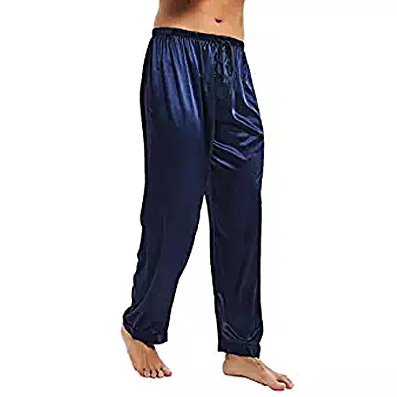 Новинка; Лидер продаж; Модные мужские однотонные шелковые пижамы из полиэстера; Длинные брюки с кружевом; Удобные повседневные брюки