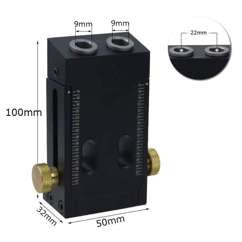 Без зажима угол отверстия размер устройства: 100*50*32 мм; С зажимным угловым отверстием размер устройства: 95*80*50 мм; Размер рукава сверла: 9 мм; Расстояние между двумя отверстиями: 22 мм; Размер сверла: 9 мм