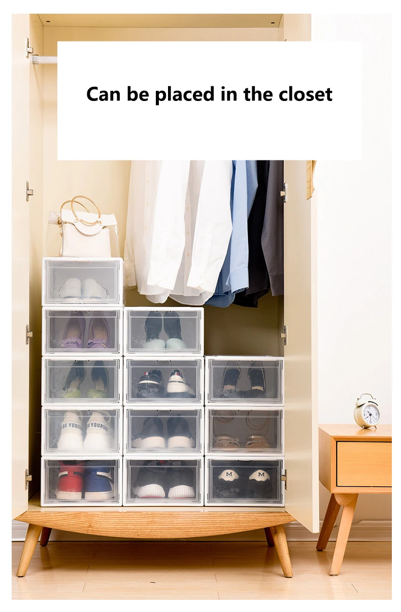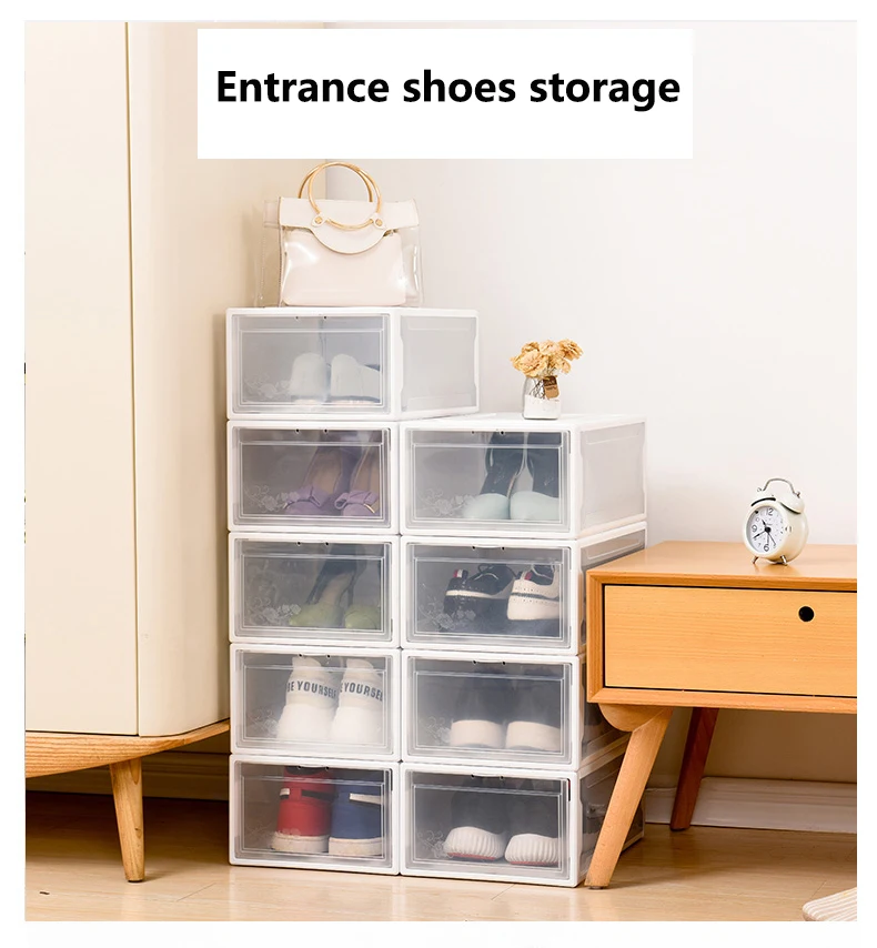 Прозрачная коробка для обуви, коробки для хранения обуви, утолщенный Органайзер на для защиты обуви от пыли, можно наложить комбинированный шкаф для обуви
