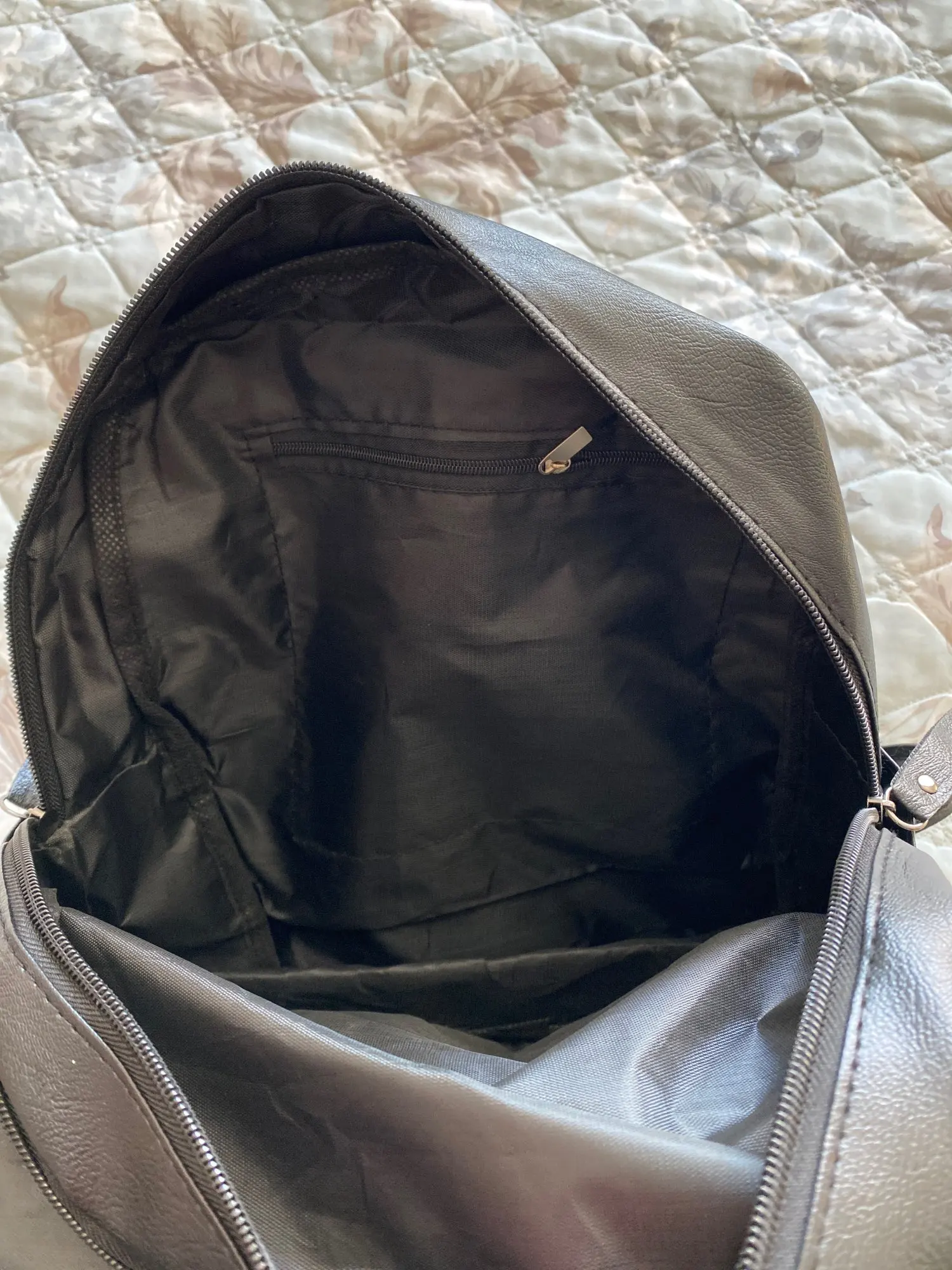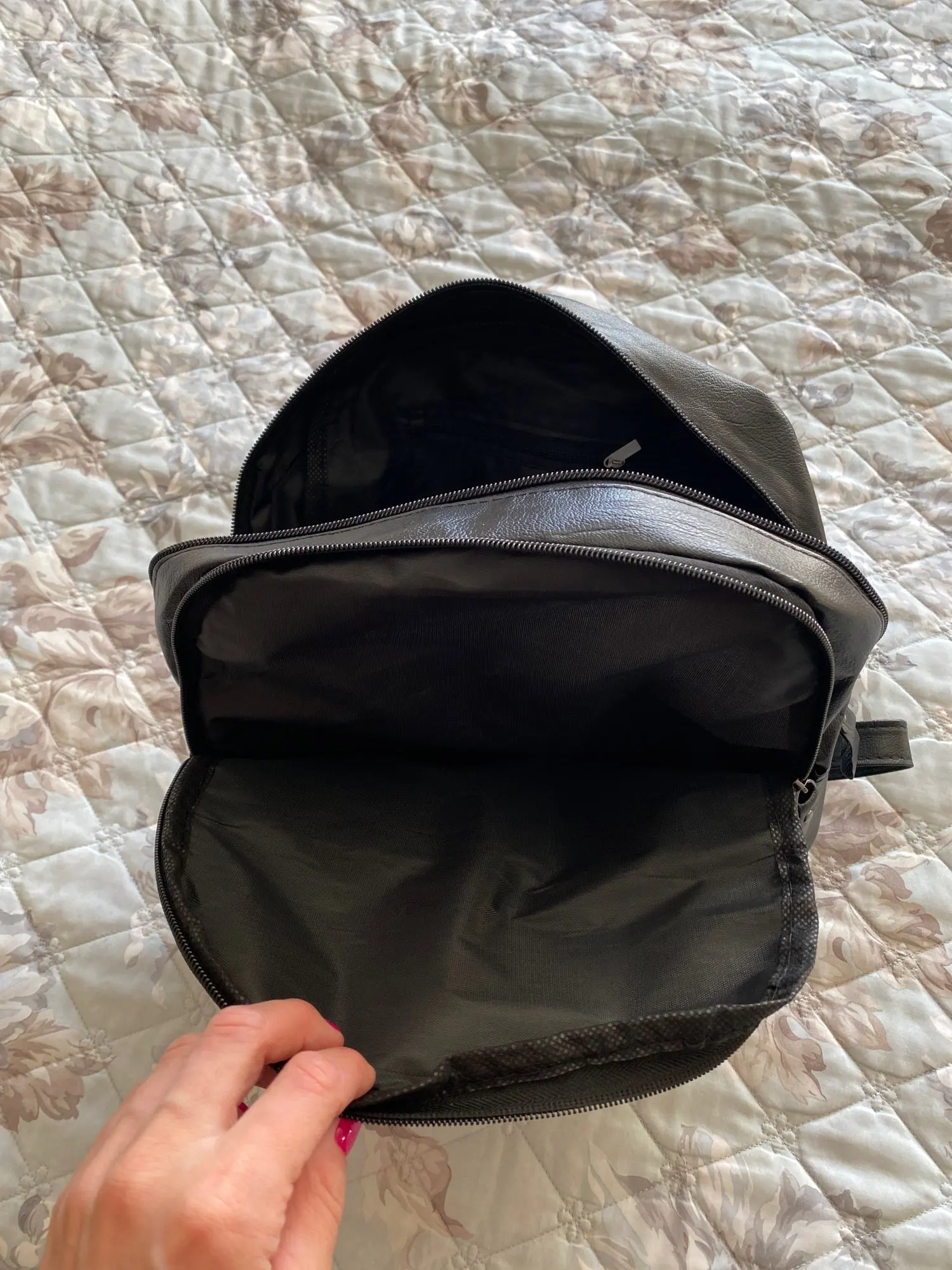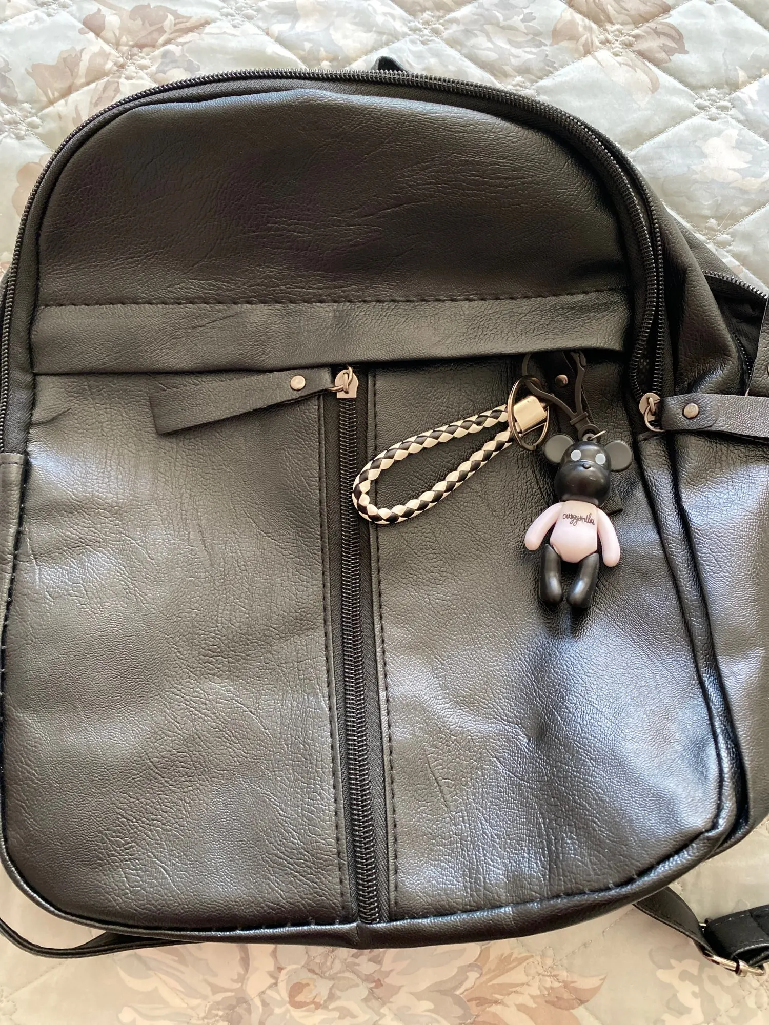 Модный женский черный кожаный рюкзак с несколькими карманами, больш...