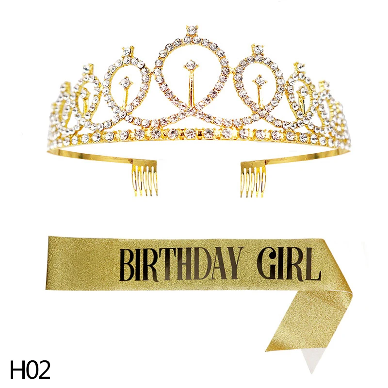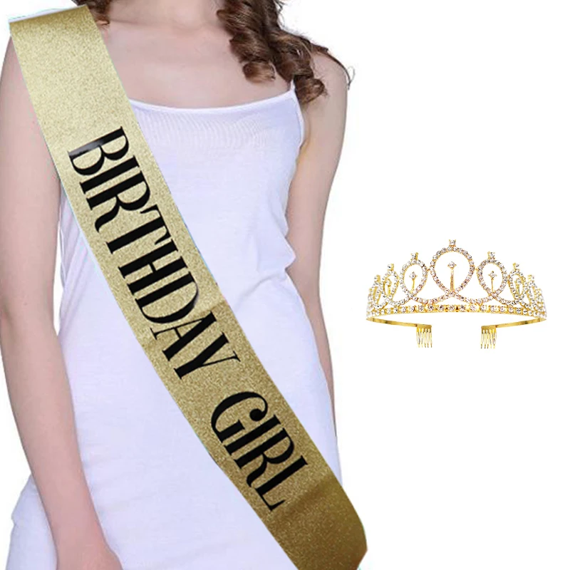 Золотые и серебряные блестящие лента для дня рождения Стразы, тиара...