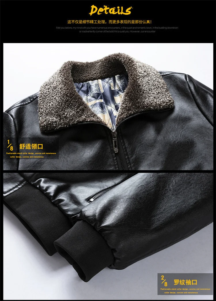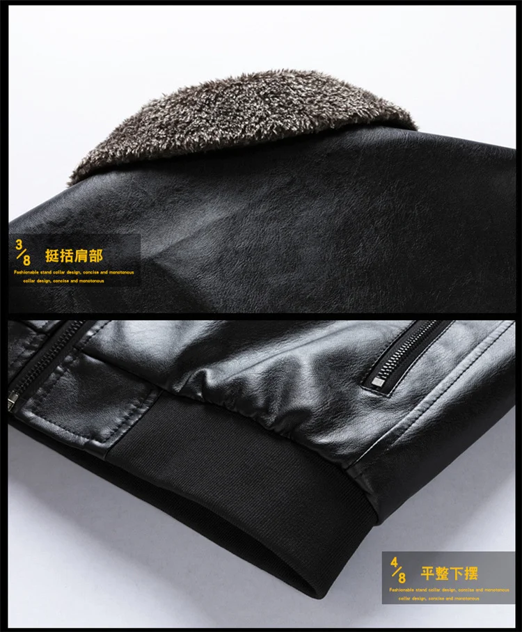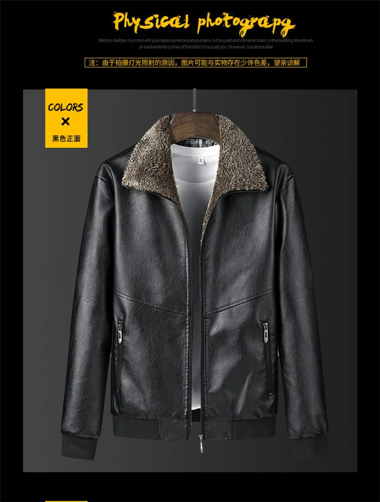 Кожаная куртка ANSZKTN, Мужская зимняя флисовая мотоциклетная куртка из искусственной кожи, Мужская Повседневная ветровка с воротником-стойкой, Тонкое Пальто 4Xl