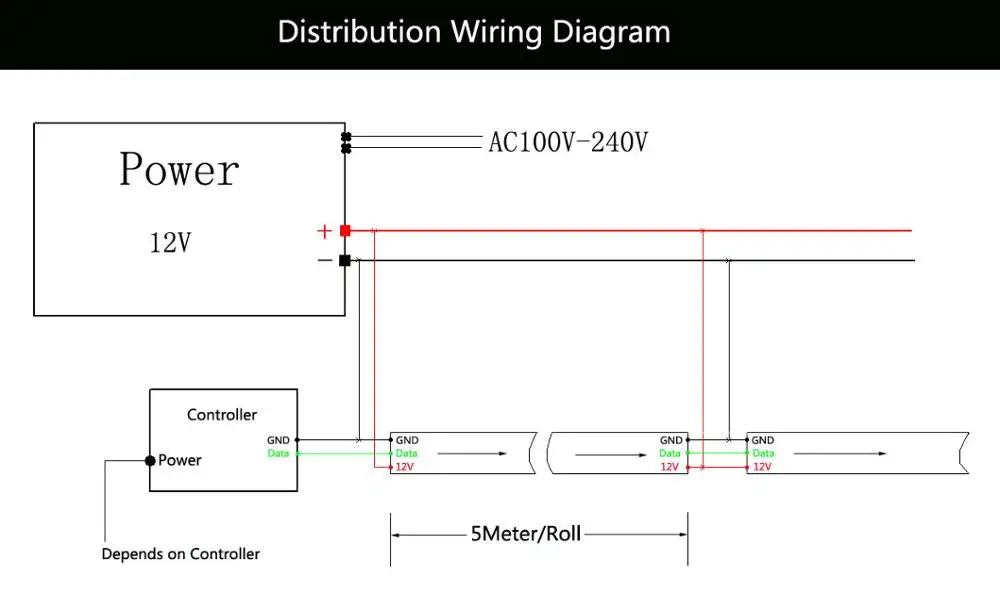 WS2811 должен использовать источник питания DC12V (нужно купить дополнительно) и светодиодный контроллер (нужно купить дополнительно) для управления!
