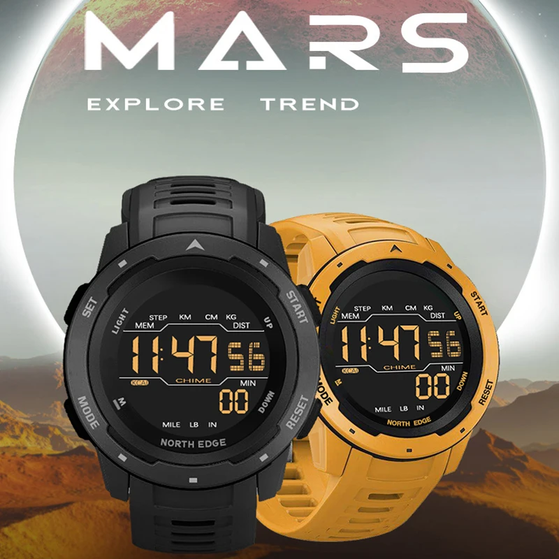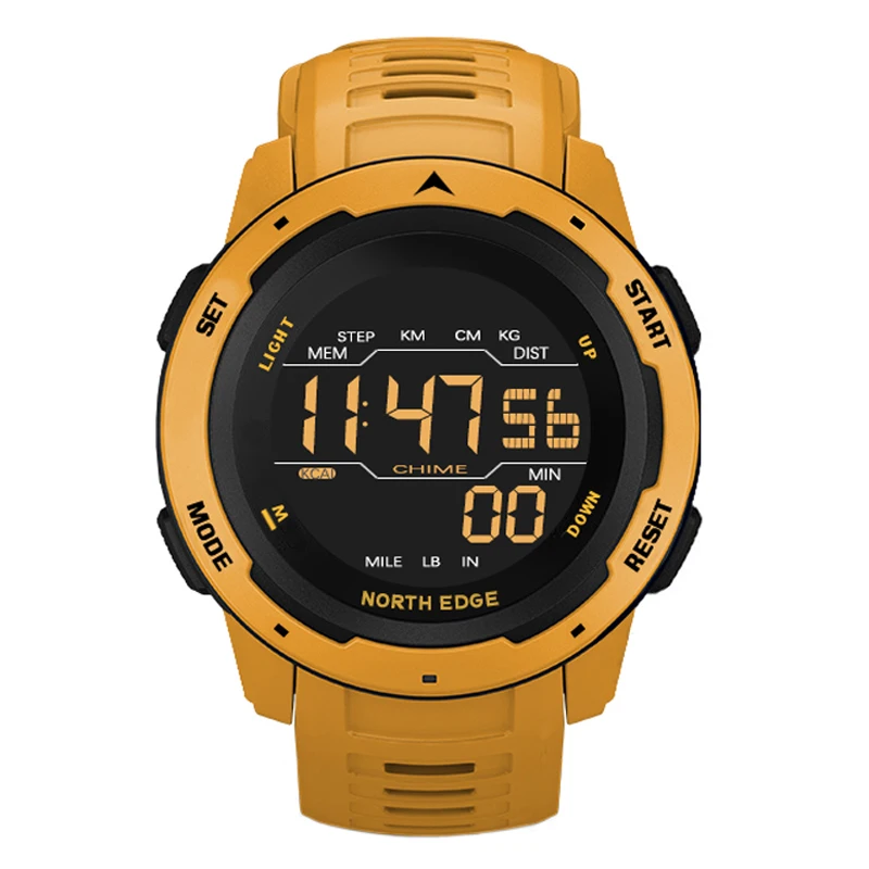 Часы мужские цифровые спортивные с шагомером и будильником, водонепроницаемые электронные, с обратным отсчетом 5 бар, в стиле милитари, желтые