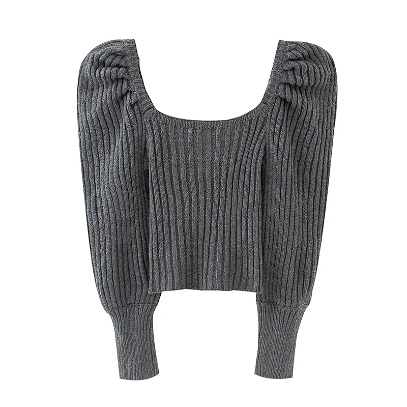 Женский свитер с открытыми плечами SLLSKY, вязаные пуловеры во французском дворцовом ретро-стиле с рукавами-фонариками, однотонные короткие женские топы