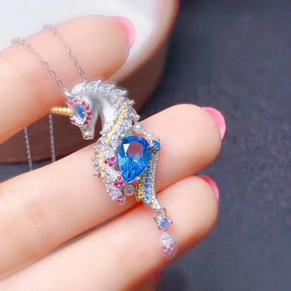 Роскошное ожерелье с инкрустированным единорогом для женщин, изысканная цепочка с животным для свитера, ювелирный подарок