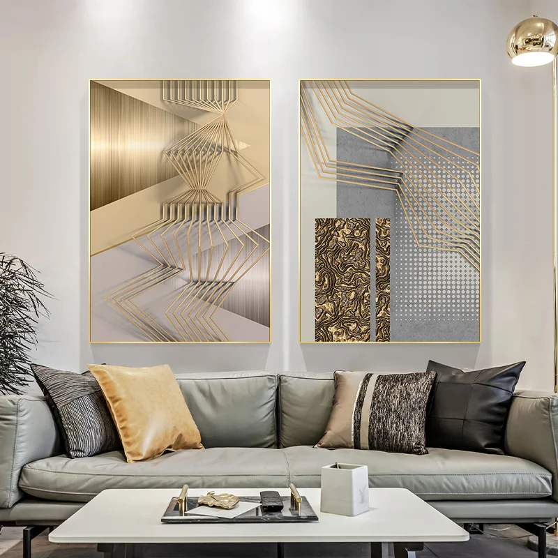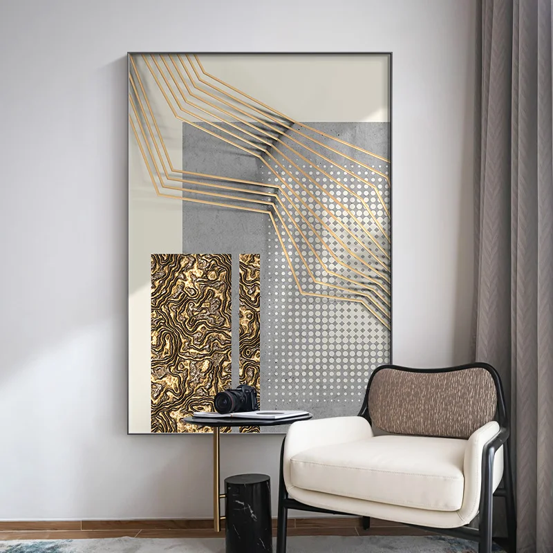 Скандинавская абстрактная Геометрическая настенная живопись, золотой роскошный плакат, печатная Настенная картина для гостиной, Современный домашний декор