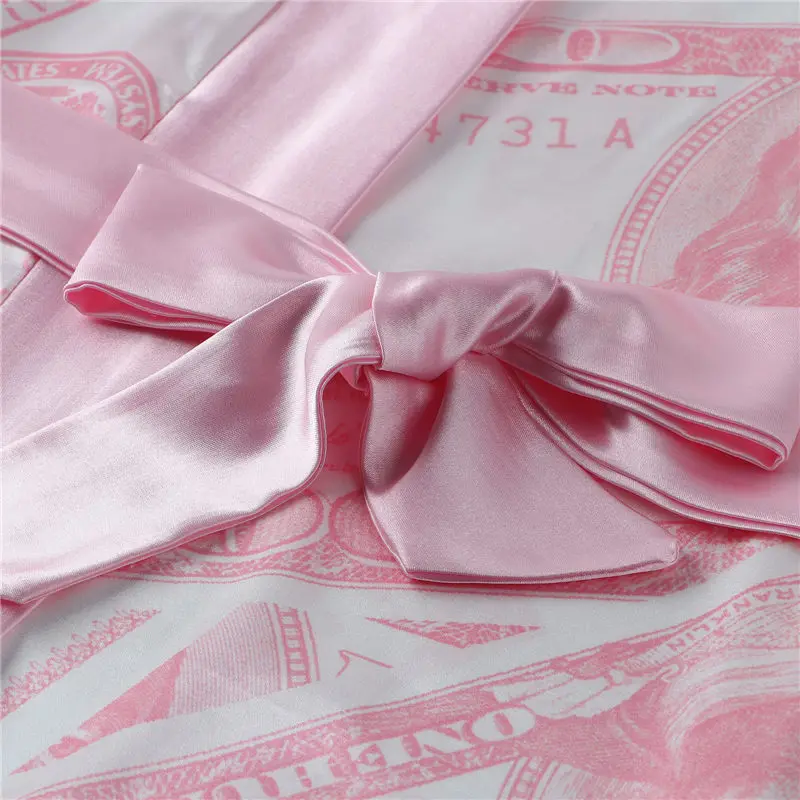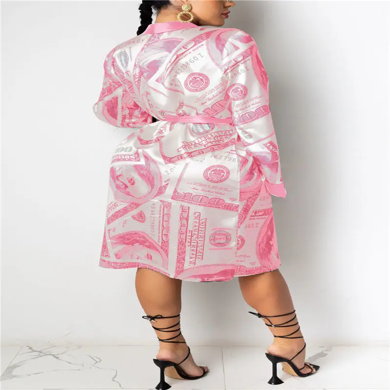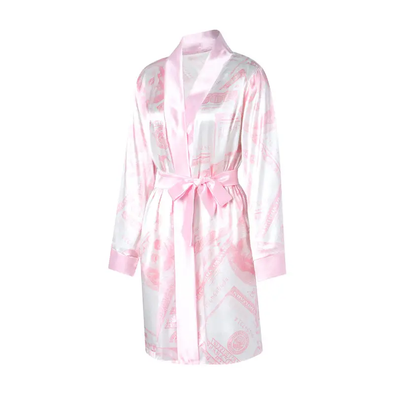 Для женщин с длинным рукавом Атласный халат дамы модный с принтом доллара шелковистые кимоно халаты пижамы с поясом модная одежда для сна 2020