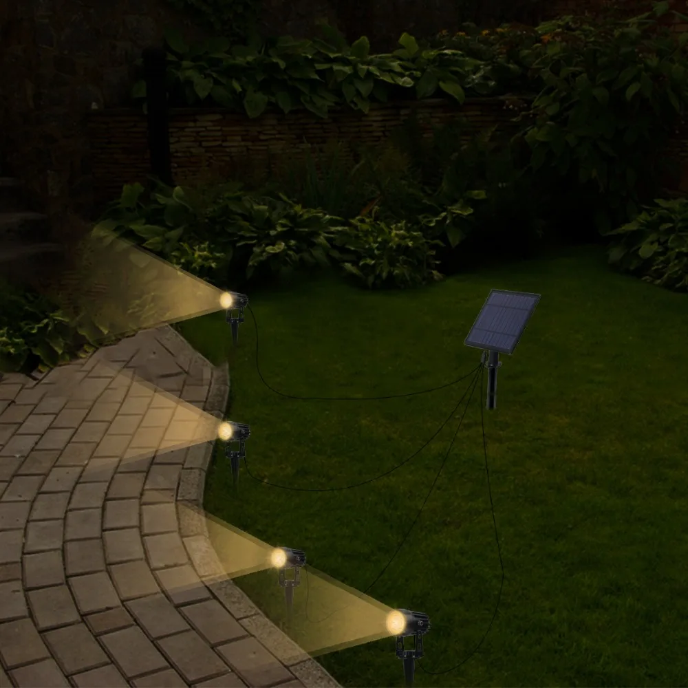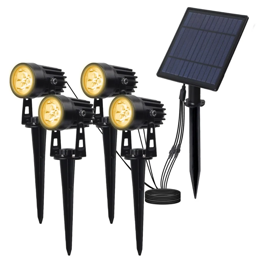 Панель солнечных батарей: поликристаллическая панель солнечных батарей 6V/3WБатарея: 3,7 в/2000 мАч * 2 18650 # литиевая батареяИсточник света: SMD 2835*12 шт.Яркость: 200-400LMЦветовая температура: 3000KВремя работы: 8-12 ч (выделено 8 ч, низко освещено 12 ч)Время зарядки: ≥ 8 чФункция: управление светом, солнечная панель заряжает батарею в течение дня и автоматически загорается ночью.Класс водонепроницаемости: IP65Удлинитель: 3 м * 4Материал: АБС-пластик литой алюминийЦвет корпуса: черныйСрок гарантии: 1 год Пакет включает в себя:Солнечные светодиодные прожекторы * 4Заземление * 5 (железо * 4, пластик * 1)Руководство по эксплуатации * 1Комплектация аксессуаров: Расширительная резиновая заглушка * 3, крепежные винты * 3 Примечание:Держите оборудование подальше от огня, чтобы избежать взрыва.Не ударяйте об прибор сильно.Не рекомендуется разбирать прибор, не повреждая оборудование. Инструкция по установке:Найдите лучшее место для установки солнечных панелей. Место, необходимое как можно ближе к южному, вдали от легких препятствий, таких как здания, деревья, заборы, кусты или тени.1. Используйте винты и гайки, чтобы собрать их вместе и закрепить их на земле, или привинтить их к стене;2. Сместите кнопку переключателя за солнечной панелью, и устройство запустится.3. Закрепите его в определенном виде и под углом, чтобы собрать максимальный Солнечный свет; Меры предосторожности:Пожалуйста, полностью зарядите перед первым использованием;Перед использованием обязательно используйте выключатель питания;Поместите или установите солнечные лампы на солнце без теней;Солнечные панели можно быстро заряжать при сильном солнечном свете. При слабом солнечном свете его можно медленно заряжать. Время зарядки зависит от интенсивности солнечного света. Время освещения зависит от интенсивности дневного света и длины времени.